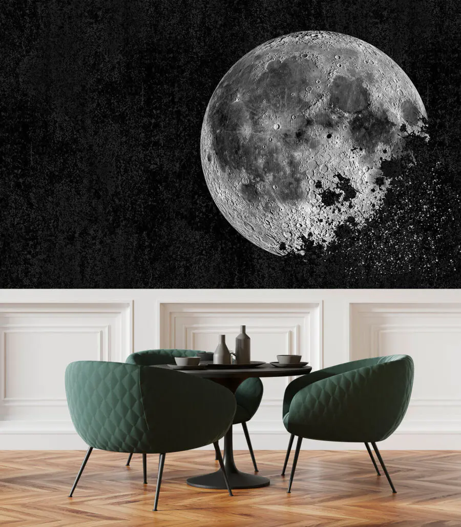 Trasformate una stanza in una fuga da sogno con questo splendido murale che raffigura una luna che si dissolve dolcemente in una notte stellata. Immaginate di entrare nel vostro spazio e di sentire il calmo abbraccio del cosmo. È come avere una fetta di universo proprio sulla vostra parete. Perfetto per le serate accoglienti o quando si vuole semplicemente sognare ad occhi aperti.