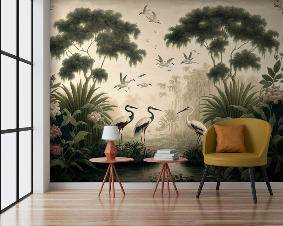 Date un’occhiata a questo splendido murale intitolato “Uccello che vola nel cielo”. È come entrare in una scena di natura da sogno, con uccelli eleganti, alberi rigogliosi e fiori in fiore. Perfetto per aggiungere un tocco estroso e sofisticato a qualsiasi stanza. Immaginate di sorseggiare il vostro caffè mattutino con una vista così serena: è quasi una mini vacanza. I dettagli sono sorprendenti, quasi come se gli uccelli stessero per volare via dalla parete. Ideale per gli amanti della natura o per chiunque voglia portare un po’ di magia all’aria aperta all’interno. Un’istantanea spinta all’umore e un’occasione di conversazione, di sicuro!
