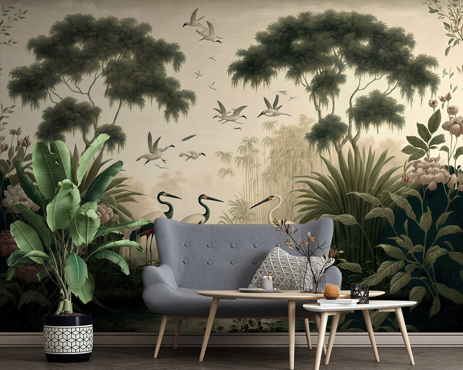 Date un’occhiata a questo splendido murale intitolato “Uccello che vola nel cielo”. È come entrare in una scena di natura da sogno, con uccelli eleganti, alberi rigogliosi e fiori in fiore. Perfetto per aggiungere un tocco estroso e sofisticato a qualsiasi stanza. Immaginate di sorseggiare il vostro caffè mattutino con una vista così serena: è quasi una mini vacanza. I dettagli sono sorprendenti, quasi come se gli uccelli stessero per volare via dalla parete. Ideale per gli amanti della natura o per chiunque voglia portare un po’ di magia all’aria aperta all’interno. Un’istantanea spinta all’umore e un’occasione di conversazione, di sicuro!