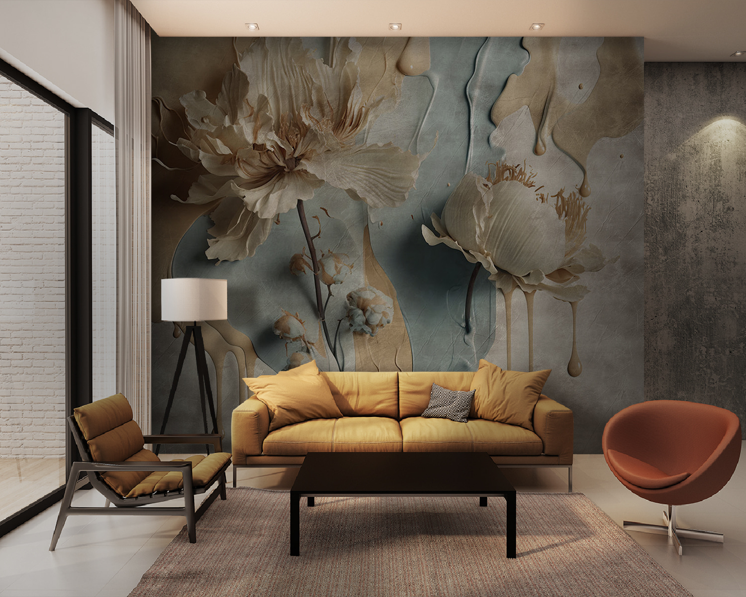 Carta da parati Fiori con gocce di vernice artistica. (SKU: u95662)