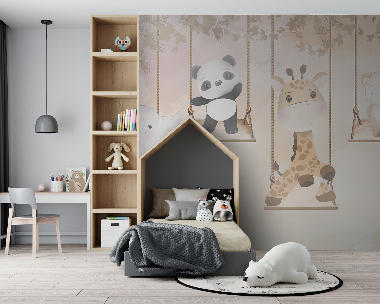 I colori tenui e pastello e lo sfondo sognante lo fanno sembrare una scena uscita da un libro di fiabe. Immaginate la gioia del vostro bambino che ogni giorno entra in questo spazio magico e magari sogna avventure con questi affascinanti personaggi! Inoltre, non è solo per i bambini: qualsiasi amante degli animali adorerà questa allegra opera d’arte. È una dolce fuga dalla frenesia quotidiana, che offre un tocco giocoso e un senso di meraviglia ogni volta che la si guarda.