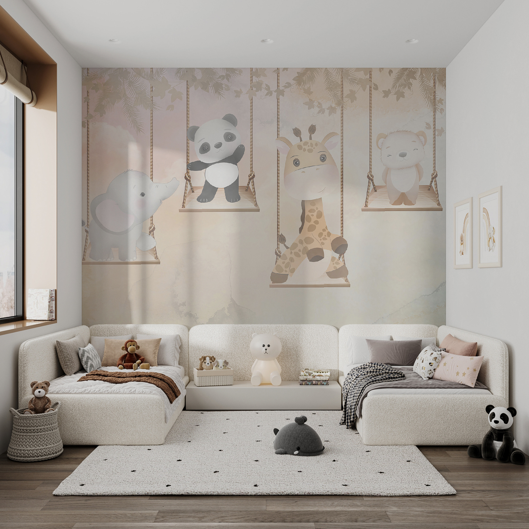 Date un’occhiata a questo delizioso murale chiamato “Murales Giraffa seduta su un’altalena di corda”. Perfetto per aggiungere un pizzico di fantasia alla stanza di un bambino, questo murale presenta una simpatica giraffa che si rilassa su un’altalena, circondata da adorabili amici animali come un panda, un elefante e un orso. Riuscite a immaginare quanto sarebbe incantevole nella cameretta di una bambina? O anche in un angolo giocoso del soggiorno?