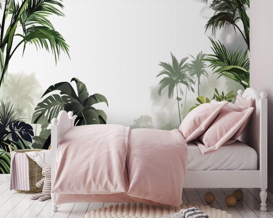 Trasformate qualsiasi stanza in una fuga lussureggiante con questo accattivante murale di palme in una foresta nebbiosa da sogno. Immaginate di svegliarvi con il morbido abbraccio del verde, come se foste entrati in un’oasi di tranquillità direttamente dai vostri sogni. Perfetto per gli spazi dei bambini o per chiunque desideri una fetta di natura, questo murale sembra un dolce invito all’esplorazione. Non è solo una decorazione, ma stimola l’immaginazione e rende più luminosa anche la giornata più grigia. Aggiungete un tocco di avventura alle pareti e osservate la magia. Chi non vorrebbe un po’ di meraviglia della giungla nella propria casa?