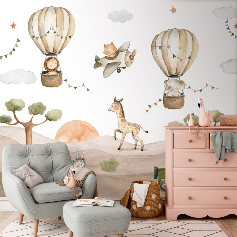 Guardate qui: un murale chiamato “Scimmia che cavalca una zebra”! Perfetto per la stanza del vostro piccolo esploratore, sia che abbia un amore per gli animali sia che abbia un’immaginazione sfrenata. Immaginatevi una scimmia che cavalca allegramente una zebra in un paesaggio stravagante che sembra uscito da una favola della buonanotte. Mongolfiere, una giraffa giocosa e una simpatica jeep completano questa adorabile scena. Immaginate che il vostro bambino si svegli ogni mattina con questo paesaggio, sentendosi come se stesse vivendo un’avventura senza fine. Non è solo un’opera d’arte da parete, è una scintilla per raccontare storie e sognare a occhi aperti. Quanto è bello? Questo murale è un successo per la stanza di qualsiasi bambino, rendendo il suo spazio divertente e unico. Chi avrebbe mai immaginato che decorare potesse essere così piacevole?