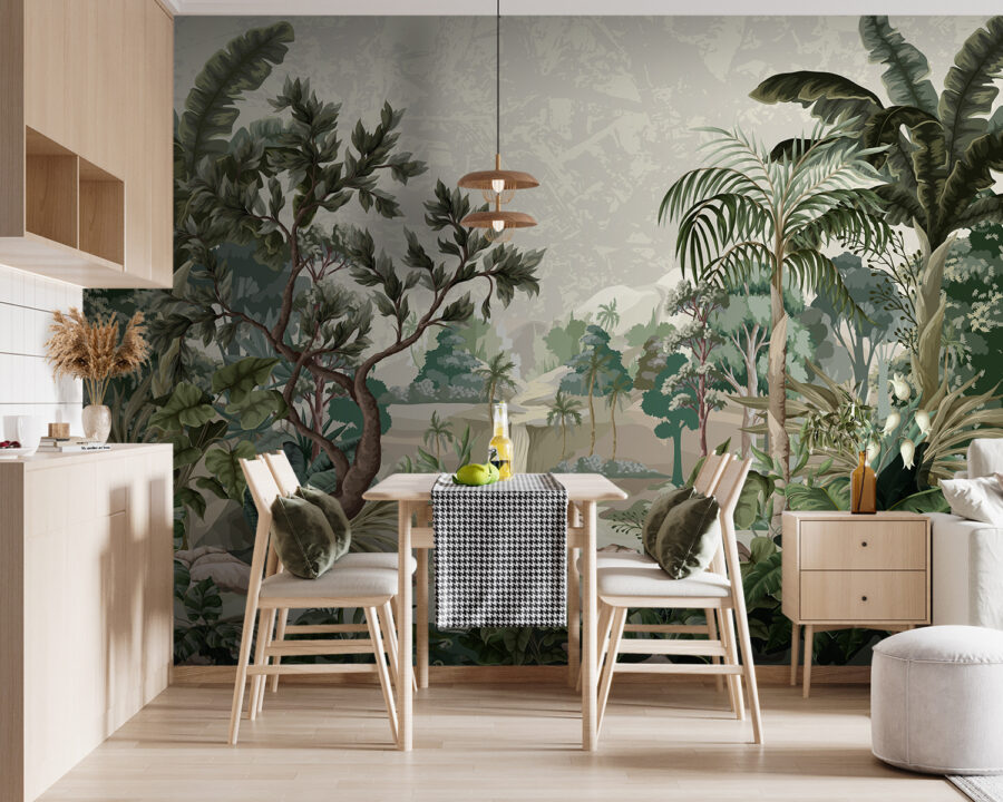 Avete mai desiderato trasformare il vostro salotto in un’oasi rilassante? Date un’occhiata a questo murale: è come una fuga tropicale istantanea e lussureggiante. Verde lussureggiante, alberi imponenti e una cascata da sogno. Sembra di entrare in una giungla magica, direttamente dal vostro divano. Immaginatevi di prendere il vostro caffè mattutino e di perdervi in questo ricco arazzo di foglie e tranquillità. Non è solo un murale, è una fetta di serenità. Perfetto per chi desidera un po’ di natura in casa. Fidatevi di me, non smetterete di fissarlo.