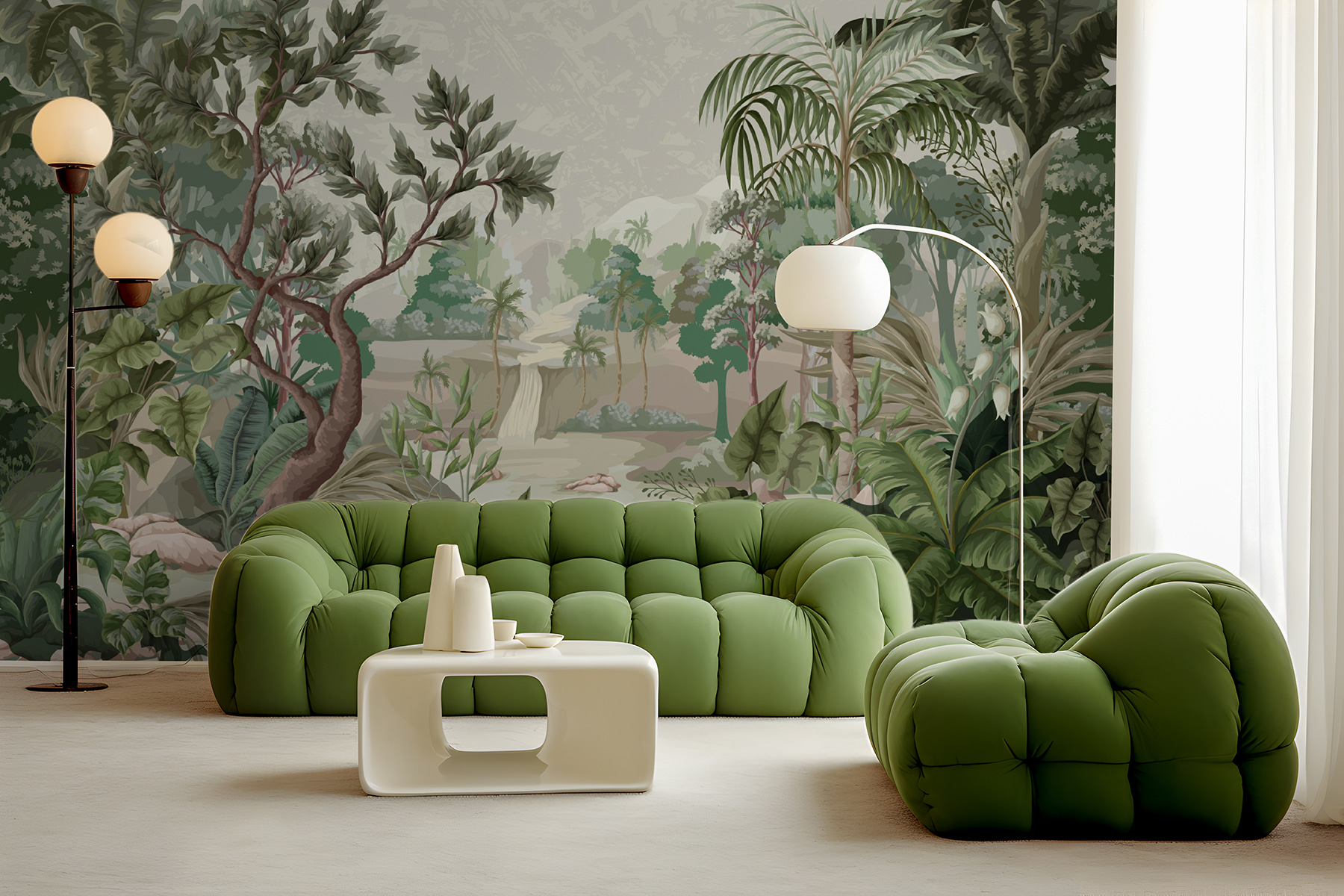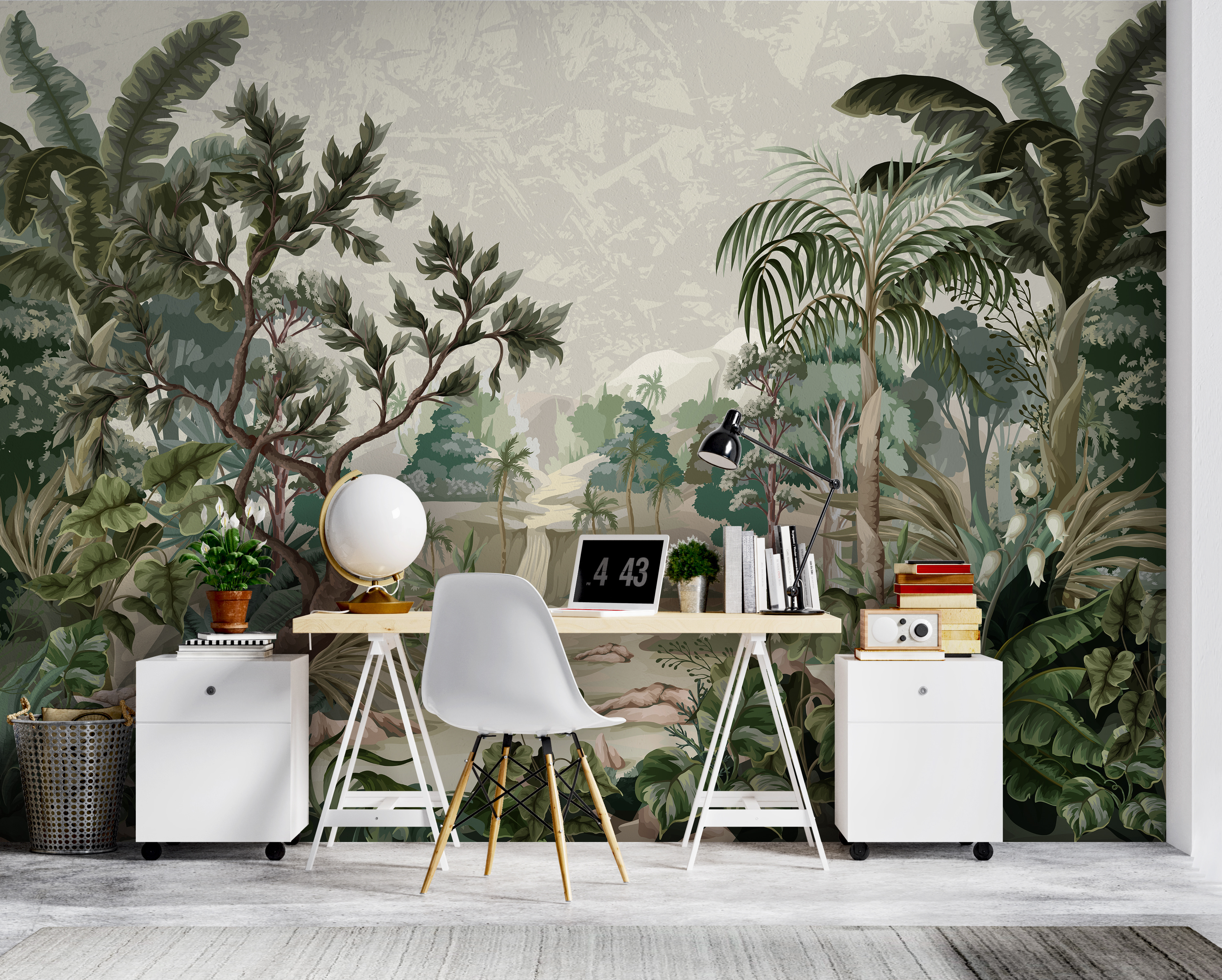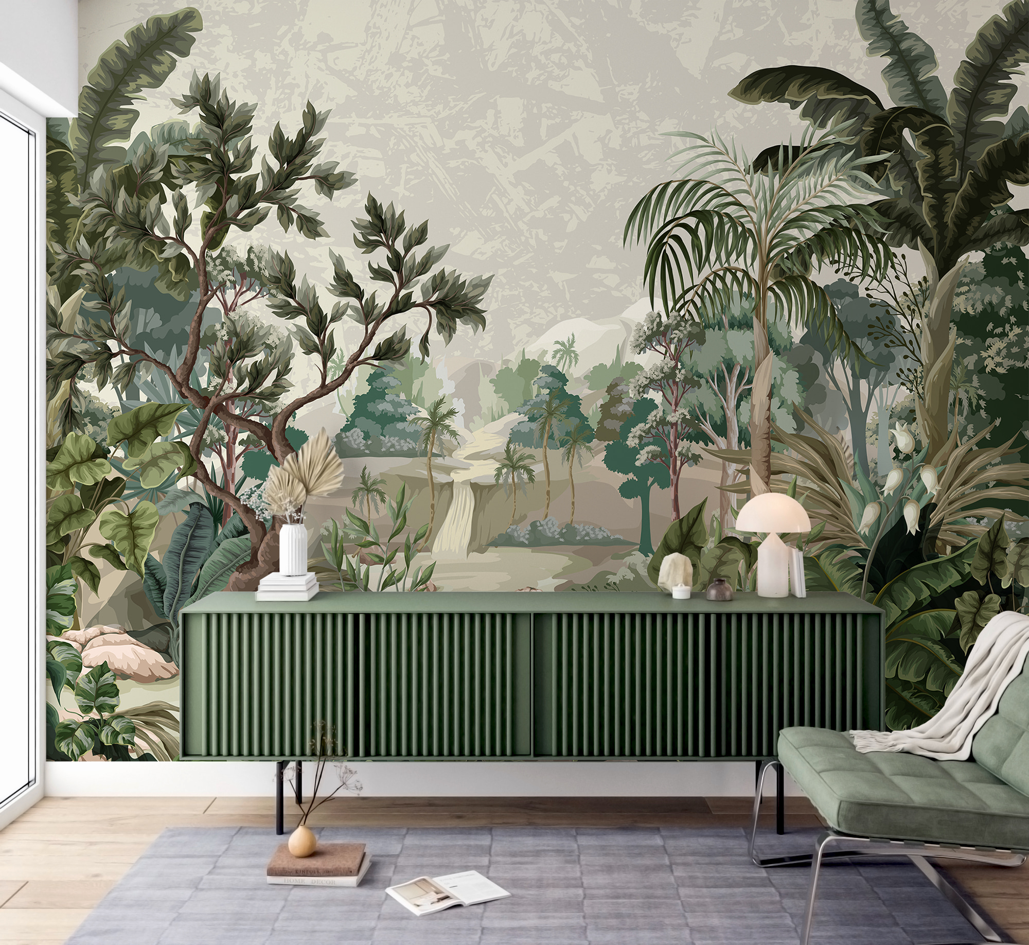 Avete mai desiderato trasformare il vostro salotto in un’oasi rilassante? Date un’occhiata a questo murale: è come una fuga tropicale istantanea e lussureggiante. Verde lussureggiante, alberi imponenti e una cascata da sogno. Sembra di entrare in una giungla magica, direttamente dal vostro divano. Immaginatevi di prendere il vostro caffè mattutino e di perdervi in questo ricco arazzo di foglie e tranquillità. Non è solo un murale, è una fetta di serenità. Perfetto per chi desidera un po’ di natura in casa. Fidatevi di me, non smetterete di fissarlo.