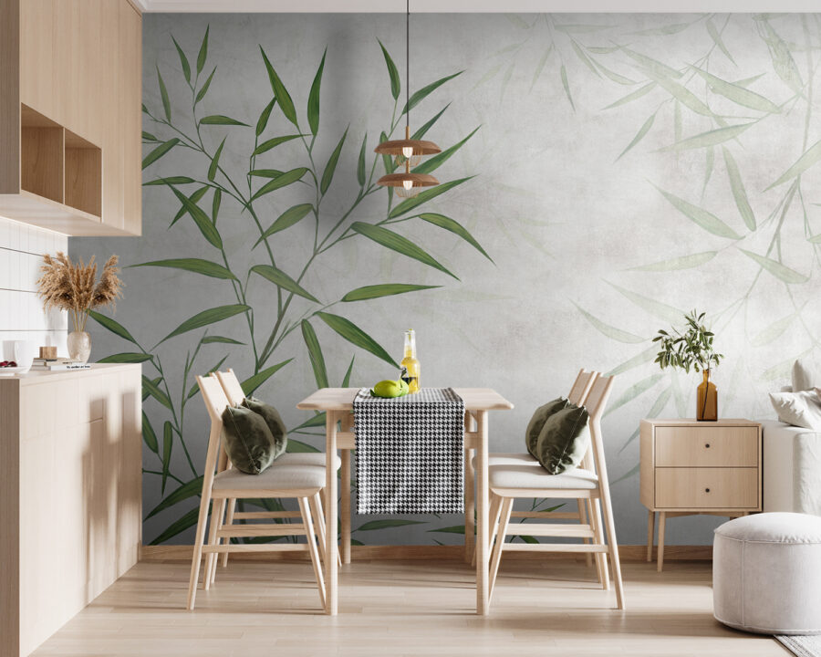Trasformare una stanza non deve essere per forza un grande progetto, giusto? Questo murales, con foglie verdi su uno sfondo delicato, riesce nell’intento senza sforzo. Immaginate di entrare in uno spazio che vi sembrerà subito sereno e fresco, quasi come se foste entrati in una foresta rilassante, fortunatamente senza le zanzare. Le tonalità tenui invitano a respirare una sensazione di tranquillità, perfetta per un accogliente angolo lettura o per una cucina vivace e piena di chiacchiere. Provateci: è come portare la natura in casa senza sporcizia e manutenzione. Basta aggiungere una tazza di tè e il gioco è fatto!