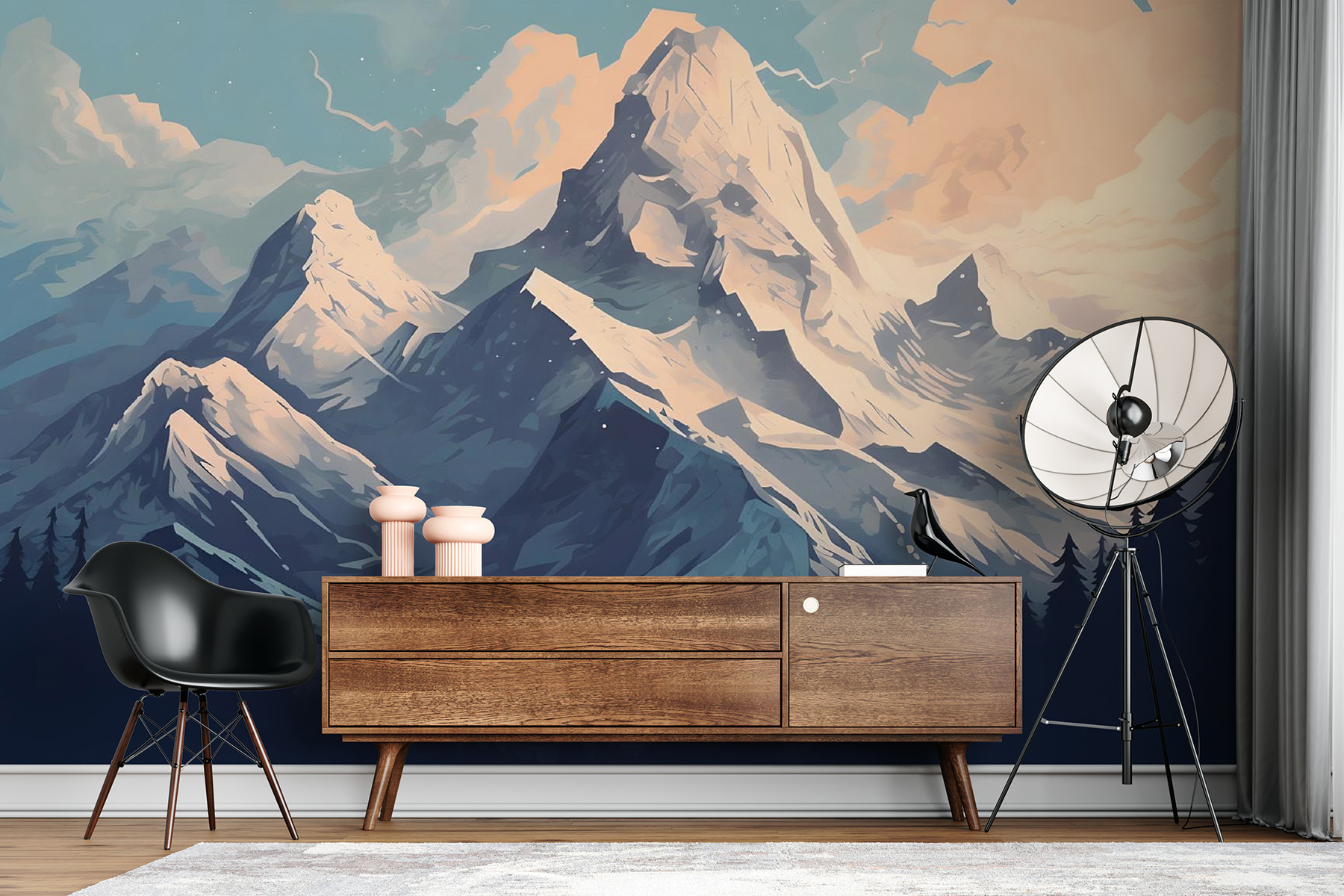 Immaginate di entrare in un’accogliente baita, con l’odore di pino nell’aria, ed ecco il murale di montagne imponenti avvolte da coperte di neve e soffici nuvole. Quest’opera non è solo uno sfondo, ma un invito a sognare ad occhi aperti le frizzanti mattine alpine e le avventure che vi aspettano appena fuori dalla porta. Immaginate di sorseggiare una cioccolata calda mentre fuori il mondo è coperto di bianco e tutto ciò che vedete sono queste cime maestose. Perfetto per un salotto o un angolo lettura, questo murale porta l’aria aperta all’interno, facendo sentire ogni sguardo come una mini fuga. Perfetto per chi desidera un tocco di maestosità della natura senza il gelo!