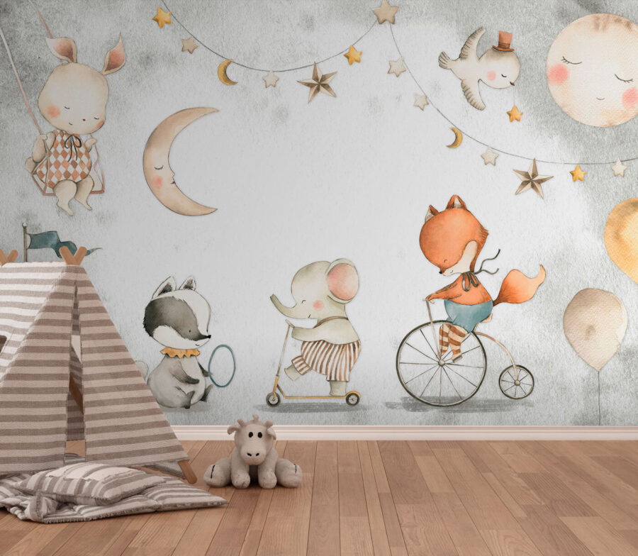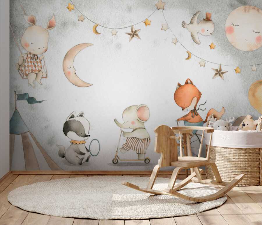 Trasformate la stanza del vostro bambino in un bizzarro paese delle meraviglie con il murale “Playful Animals at the Circus Carnival”. Questa incantevole stampa vi porterà in un accogliente carnevale da sogno, dove affascinanti animali giocano e si divertono sotto un cielo stellato. Perfetta per aggiungere un tocco di magia alle camerette o alle aree gioco, presenta un dolce coniglietto, una volpe giocherellona e altri adorabili amici che si divertono su varie giostre. Vi piacerà vedere il viso del vostro piccolo illuminarsi quando scoprirà le deliziose scene. Non è solo una decorazione da parete, è una dose quotidiana di gioia. Immaginate le storie della buonanotte su questo sfondo: pura magia!
