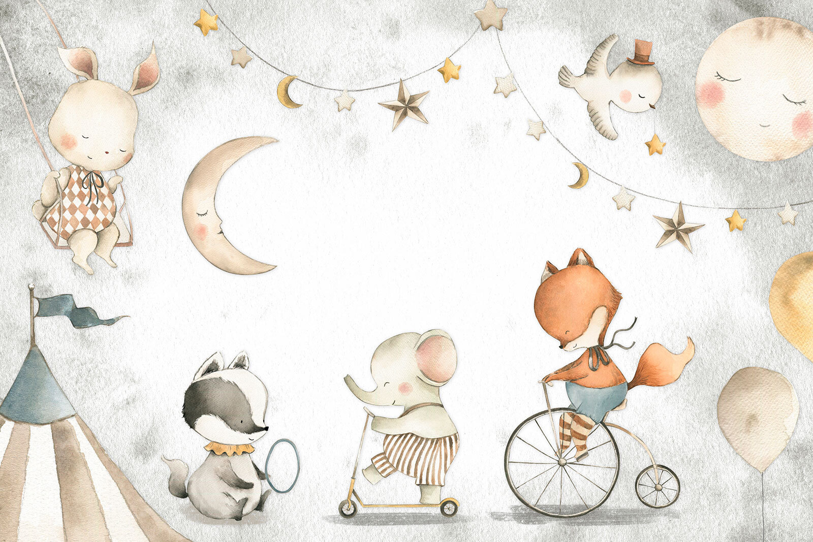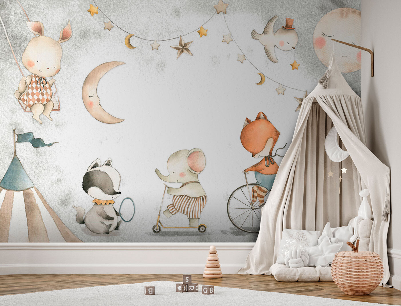 Trasformate la stanza del vostro bambino in un bizzarro paese delle meraviglie con il murale “Playful Animals at the Circus Carnival”. Questa incantevole stampa vi porterà in un accogliente carnevale da sogno, dove affascinanti animali giocano e si divertono sotto un cielo stellato. Perfetta per aggiungere un tocco di magia alle camerette o alle aree gioco, presenta un dolce coniglietto, una volpe giocherellona e altri adorabili amici che si divertono su varie giostre. Vi piacerà vedere il viso del vostro piccolo illuminarsi quando scoprirà le deliziose scene. Non è solo una decorazione da parete, è una dose quotidiana di gioia. Immaginate le storie della buonanotte su questo sfondo: pura magia!