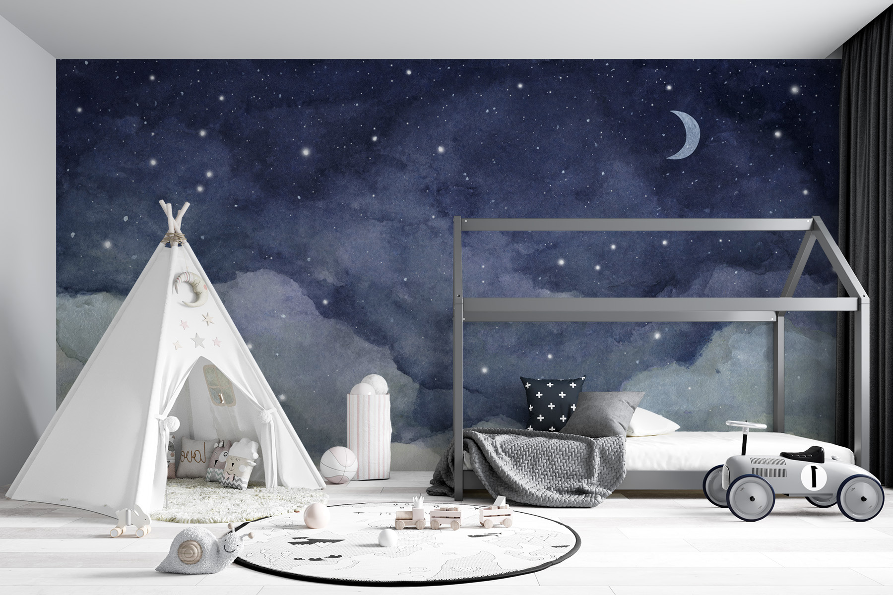 Trasformate qualsiasi parete in una fuga da sogno con questo incantevole murale di nuvole e stelle. Immaginate un cielo sereno, in cui i più piccoli possano lasciarsi trasportare dalle loro avventure, osservando le soffici nuvole e le stelle scintillanti. È come avere una fetta di cielo notturno nella propria stanza! Perfetto per lo spazio di un bambino, questo murale aggiunge un tocco stravagante che stimola l’immaginazione. Che si tratti di storie della buonanotte, di spuntini di mezzanotte o di sogni a occhi aperti, questo murale crea un’atmosfera accogliente che sembra perfetta. Trasforma le pareti in una tela di meraviglia, dove ogni sguardo invita a una nuova storia. Un modo fantastico per ispirare la creatività e l’amore per il cielo notturno!
