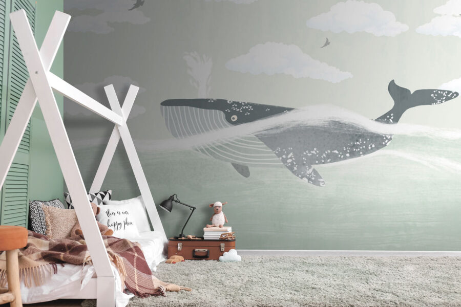 Immaginate un mondo in cui una balena gigante nuota serenamente tra morbide onde in un mare di nuvole pastello: che bello! Il murale “Shadow of a Bird” è un’evasione da sogno per la stanza del vostro bambino, per il vostro accogliente angolo di lettura o per qualsiasi altro spazio che necessiti di un po’ di estro. È presente sia nella categoria Bambini che in quella dei Murales più popolari ed è uno dei miei preferiti (fidatevi, questo è da tenere). Immaginate che il vostro bambino si svegli ogni mattina con questa scena magica: pura meraviglia e calma. I colori tenui e le linee delicate sono rilassanti, perfetti per creare un tono di pace. È come se la stanza stessa vi abbracciasse dolcemente. Un tocco fantastico per stimolare l’immaginazione e aggiungere un’atmosfera artistica senza essere troppo forte. Inoltre, è divertente avere una balena come compagno di stanza, no?