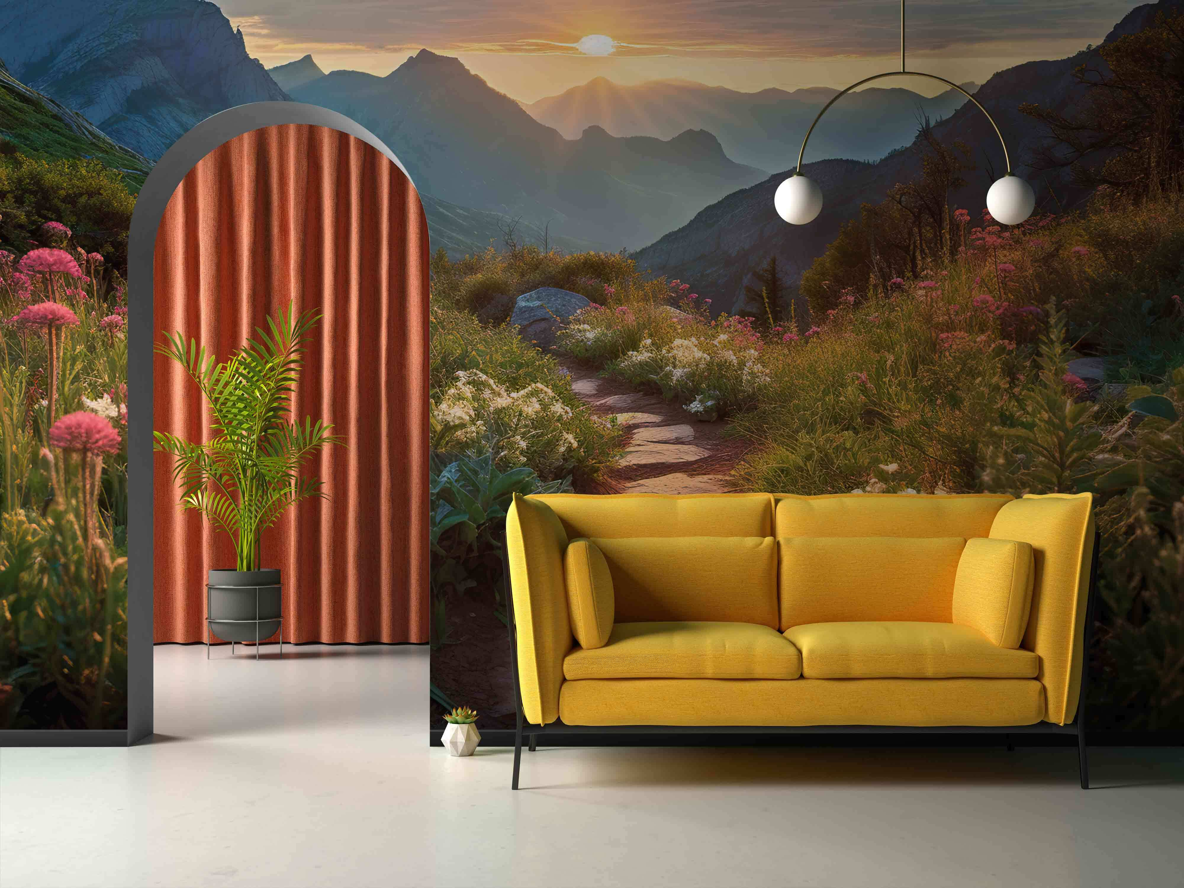 Scoprite la serenità quotidiana con il nostro murale “Mountain Trail at Sunrise”. Cattura perfettamente quel momento di pace quando il sole inizia la sua ascesa, proiettando caldi raggi su un tranquillo sentiero di montagna cosparso di fiori selvatici. Riuscite a sentire il dolce fruscio della brezza mattutina? Questo murale è ideale per gli amanti della natura che desiderano un tocco di aria aperta negli ambienti interni, ideale per rilassarsi dopo una lunga giornata. Immaginate di gustare il vostro caffè mattutino con uno sfondo così suggestivo! Sentite l’aria fresca di montagna e lasciate che questa vista mozzafiato trasformi ogni stanza in un accogliente rifugio.