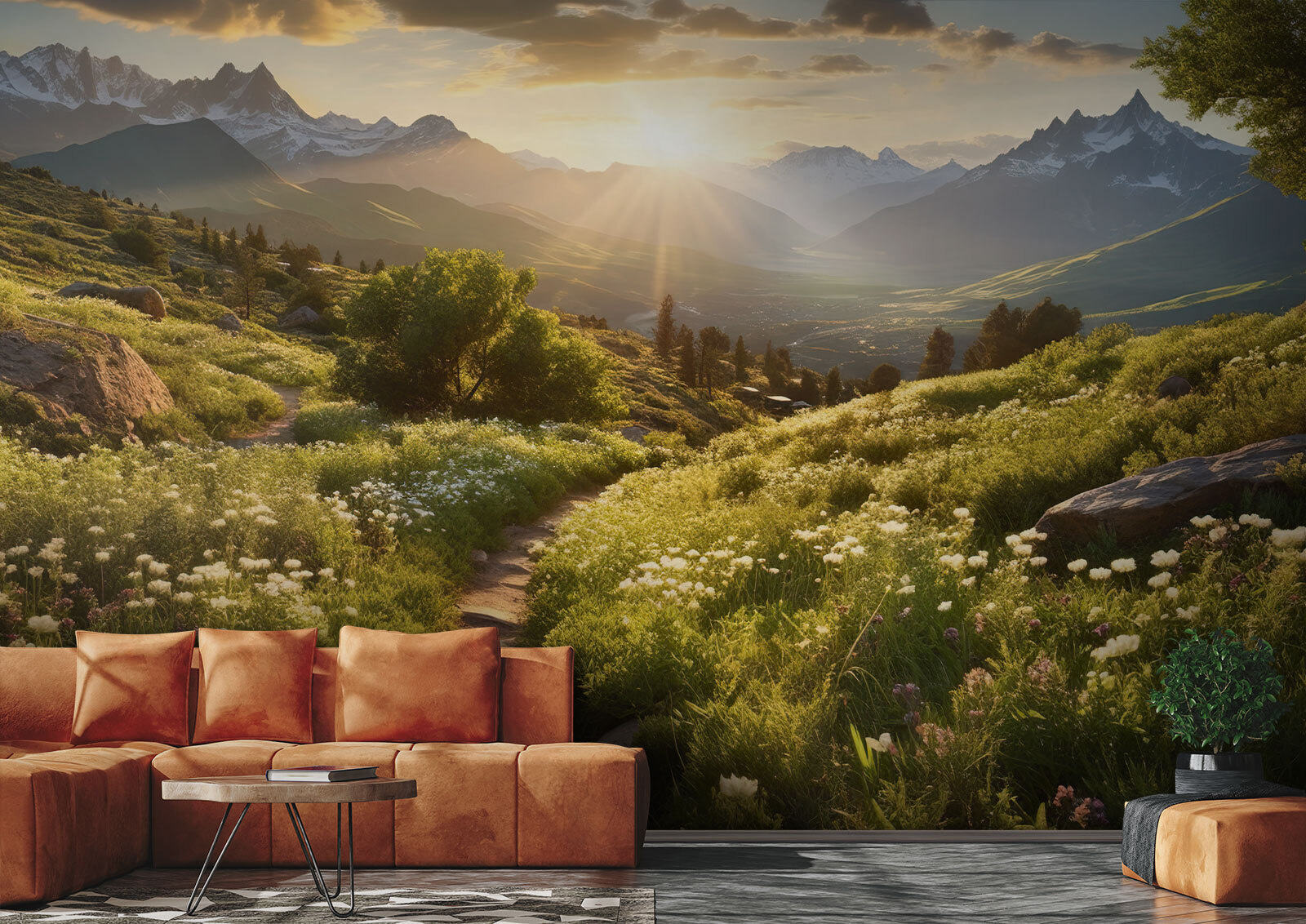 Bene, immaginate di essere nel vostro salotto, ma all’improvviso non lo siete più. Questo murale? Lo fa. È come entrare in un rifugio tranquillo, circondato da un albero rigoglioso e da maestose montagne in lontananza. Quasi si sente l’aria frizzante della montagna e il fruscio delle foglie.