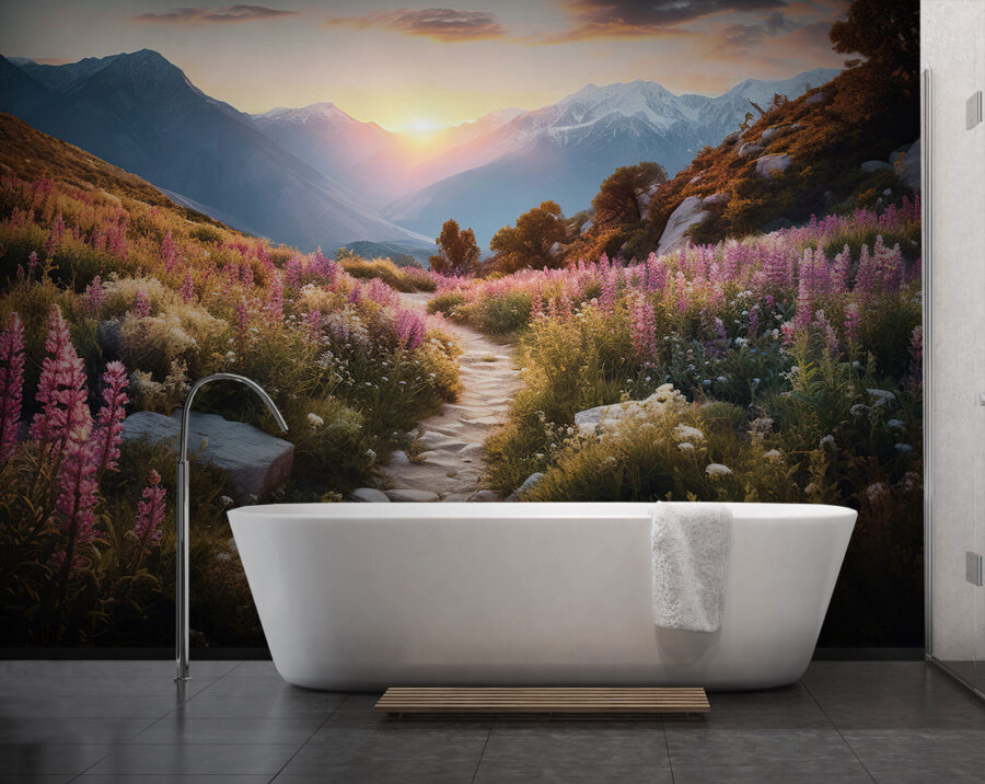 Immaginate di entrare in una stanza e di essere accolti da un vivace campo di fiori e da rocce frastagliate: sembra un sogno, vero? Questo murale fa proprio questo! Ricco di vivaci fioriture e di maestose vedute di montagna, è come una fetta di natura personale senza scarponi da trekking. Perfetto per ravvivare un angolo accogliente o per aggiungere un tocco di avventura a uno spazio più ampio. Immaginatevi gli amici che chiacchierano, le risate che si mescolano alla vostra fuga nella natura. Non è solo un oggetto d’arredamento, è uno stato d’animo, un argomento di conversazione e un piccolo promemoria della bellezza che c’è fuori. Chi non lo vorrebbe?