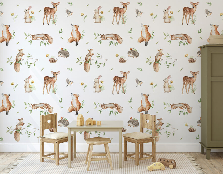 Immaginate di entrare nella stanza di un bambino e di notare l’adorabile murale “Riccio con un fungo sulla schiena”. Immediatamente si viene colpiti dall’atmosfera affascinante del bosco. È come se aveste un pezzo di foresta incantata, proprio a casa vostra! Il simpatico riccio, con il funghetto che lo accompagna, aggiunge un tocco giocoso: si può quasi immaginare che si muova tra gli alberi, raccogliendo avventure.