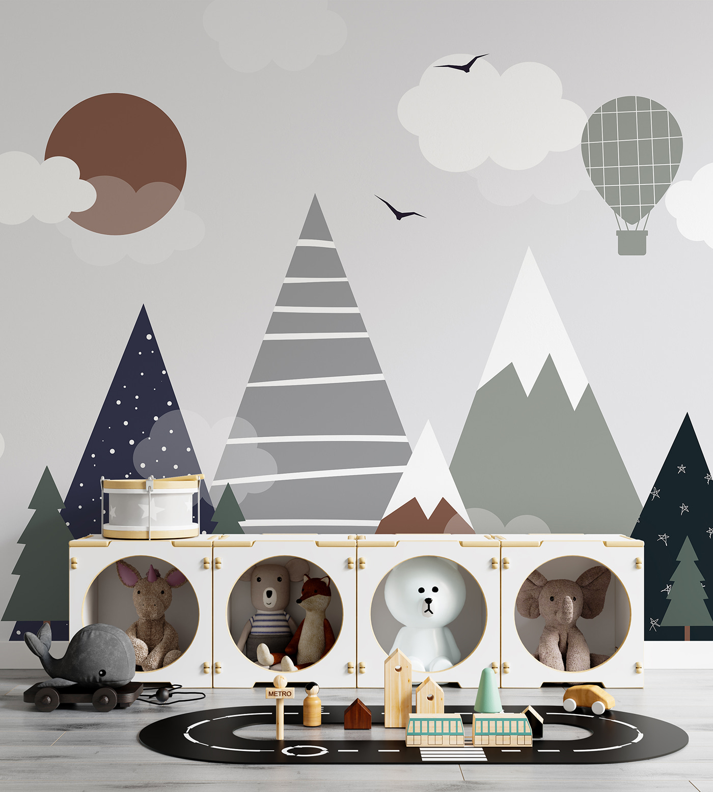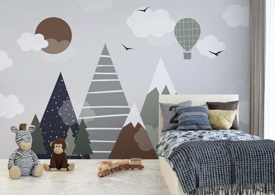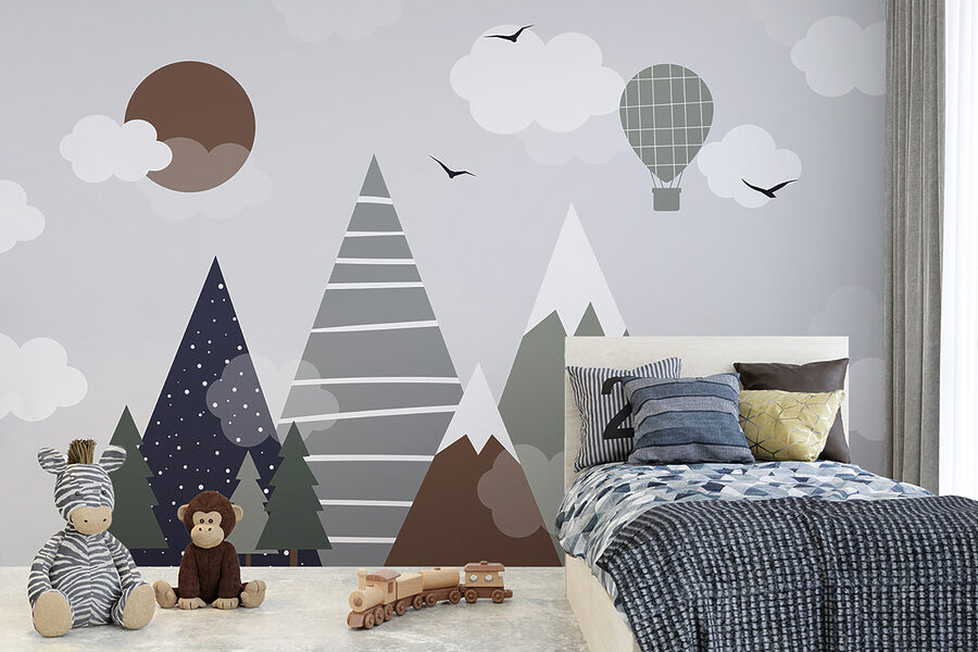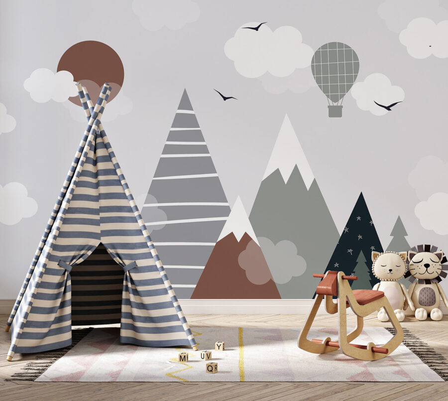 Guardate questo fantastico murale: si chiama “Cerchio marrone con nuvole bianche”. Perfetto per la camera dei bambini, soprattutto se si vuole aggiungere un tocco di fantasia al loro spazio. Immaginate di alzare lo sguardo e vedere questa scena giocosa di montagne, nuvole e una mongolfiera. Sembra quasi di entrare in un libro di fiabe: magico, vero?