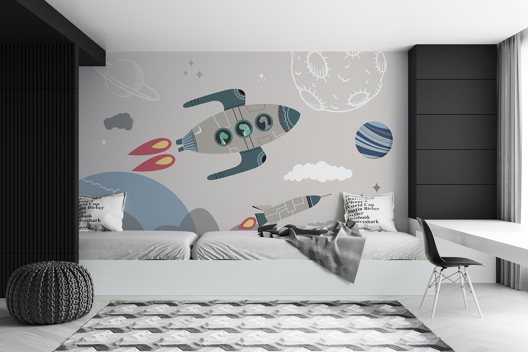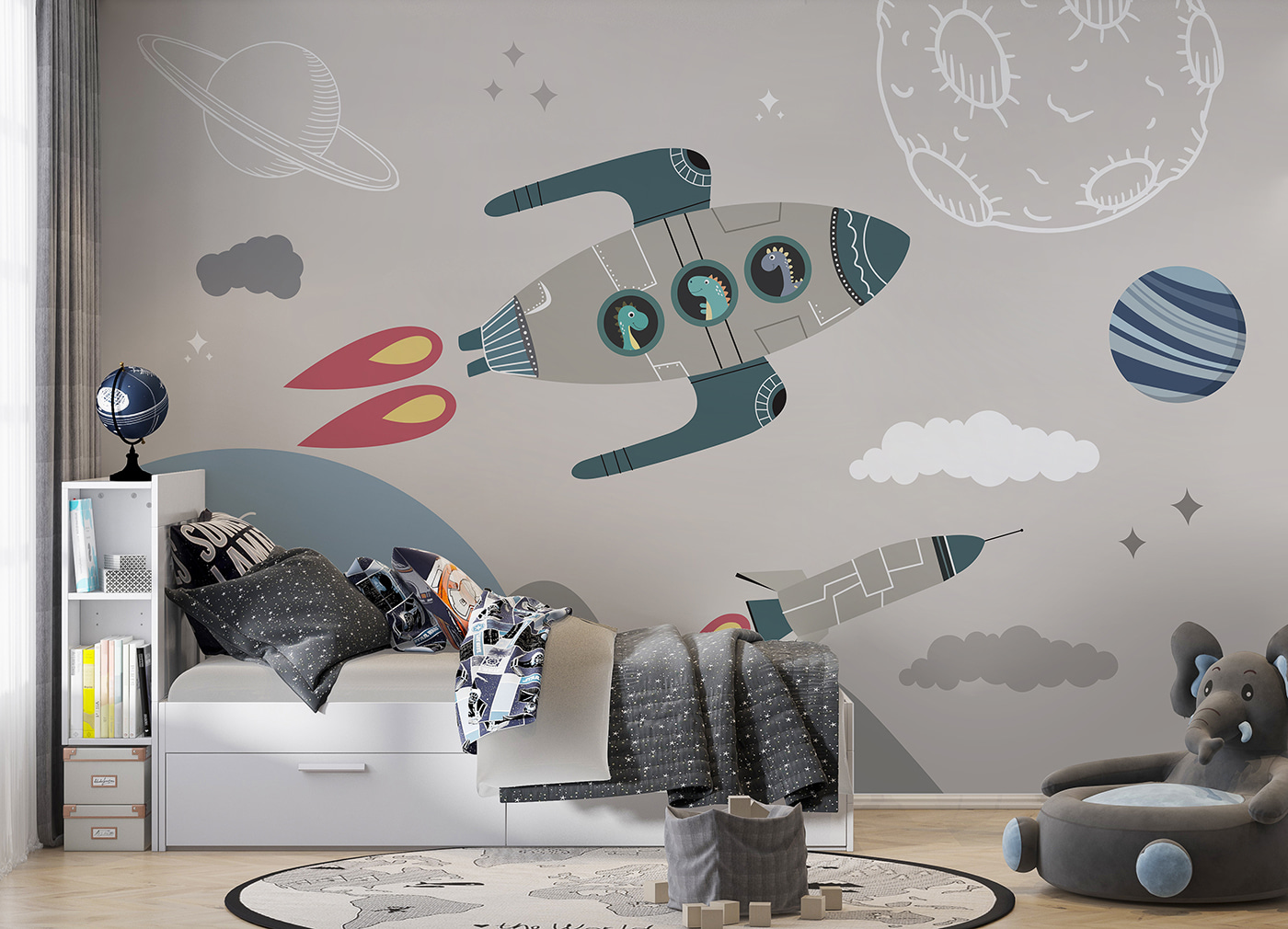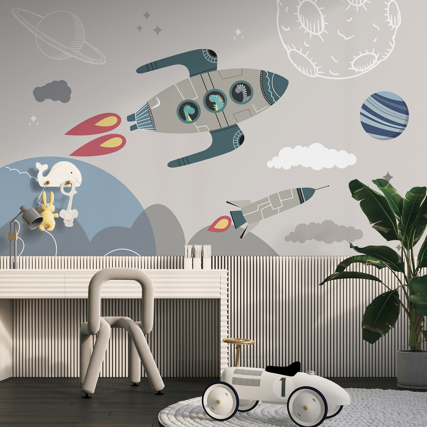 Immaginate questo: dinosauri che sfrecciano nello spazio a bordo di razzi! È pura magia su una parete! Perfetto per la cameretta di ogni bambino, questo murale scatena avventure infinite e un’immaginazione sfrenata. Pensate a storie della buonanotte su astronauti T-Rex e atterraggi sulla luna dei dinosauri. Guardare gli occhi del vostro piccolo che si illuminano ogni volta che lo vedono non ha prezzo. I colori sono morbidi e accattivanti, creando un’atmosfera accogliente e allo stesso tempo esilarante. Si tratta di una miscela stravagante di fascino preistorico e di eleganza spaziale. Ideale per piccoli sognatori e futuri esploratori. Un’ora di letto con un razzo? Sì, grazie!