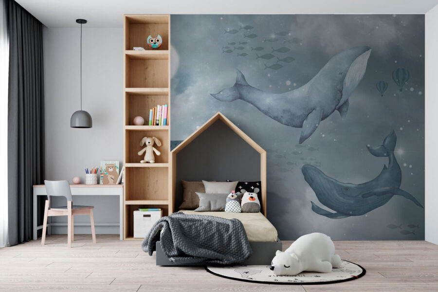 Immaginate di trasformare la stanza del vostro bambino in un paese delle meraviglie sottomarino: questo murale “Balena che nuota nell’acqua” può fare proprio questo! Con i suoi blu sognanti e delicati e le balene giocose che danzano, non è solo un murale: è come immergersi in un’avventura da libro di fiabe. Perfetto per le camerette di bambini e ragazzi, trasmette un’atmosfera tranquilla e un senso di magia. È uno di quei pezzi che vi faranno sorridere ogni volta che ci entrerete e, chissà, potrebbe anche ispirare un futuro biologo marino o due. Leggero, elegante e assolutamente affascinante. E poi, tutti i bambini non amano le balene?