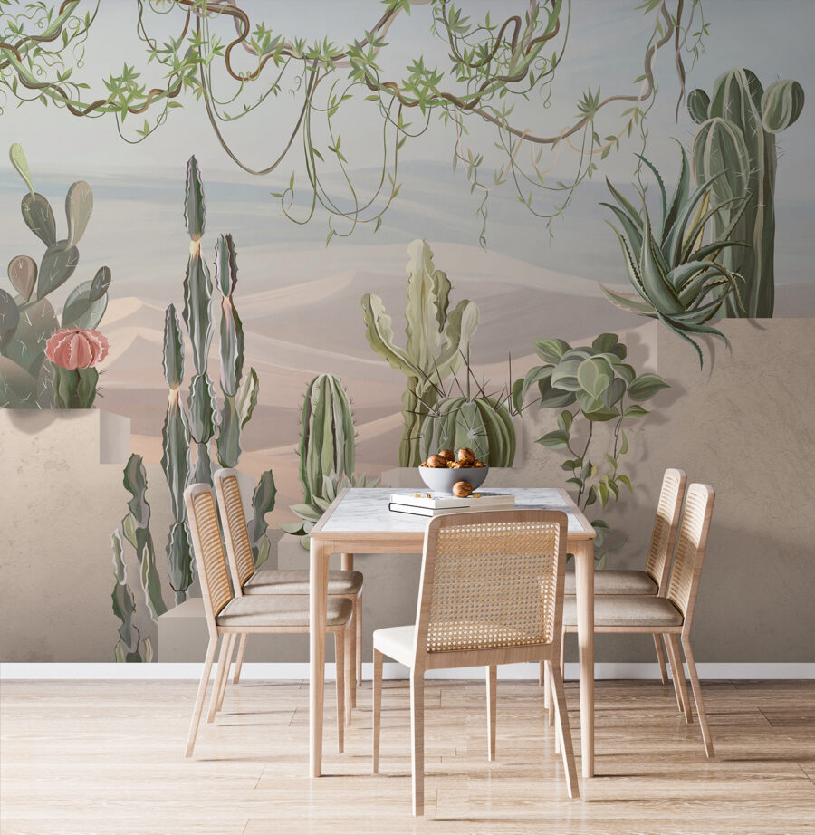 Immaginate di entrare nella vostra stanza e di sentirvi come in un’incantevole oasi nel deserto. Questo murale “Desert Plants Decorate Sunny Steps” fa esattamente questo. Con i suoi affascinanti cactus e il verde lussureggiante, crea una miscela rilassante di calore e tranquillità. È come se il sole baciasse le vostre pareti ogni mattina! Perfetto per far sembrare più grandi gli spazi più piccoli, questo capolavoro in 3D aggiunge profondità e dimensione. Gli amici saranno entusiasti dell’aspetto realistico e sereno. Inoltre, non è necessario annaffiare: è il vostro tipo di giardino!