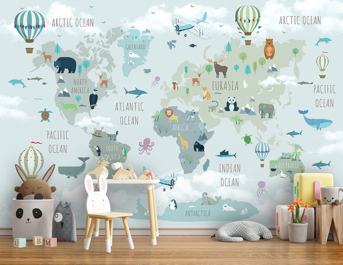 Avete mai pensato di portare il vostro piccolo in giro per il mondo senza uscire dalla sua stanza? Questo murale “Mongolfiera con bandiere” lo rende possibile, e anche molto divertente! Non è solo una mappa, è un’avventura. Immaginate di volare tra le nuvole in una mongolfiera colorata, di avvistare simpatici animali e di esplorare i continenti. È perfetta per le menti curiose e i sognatori a occhi aperti.