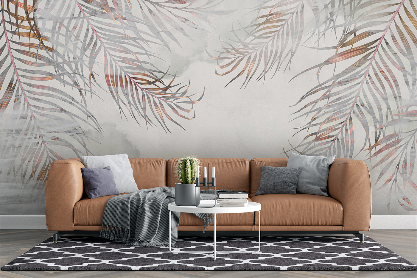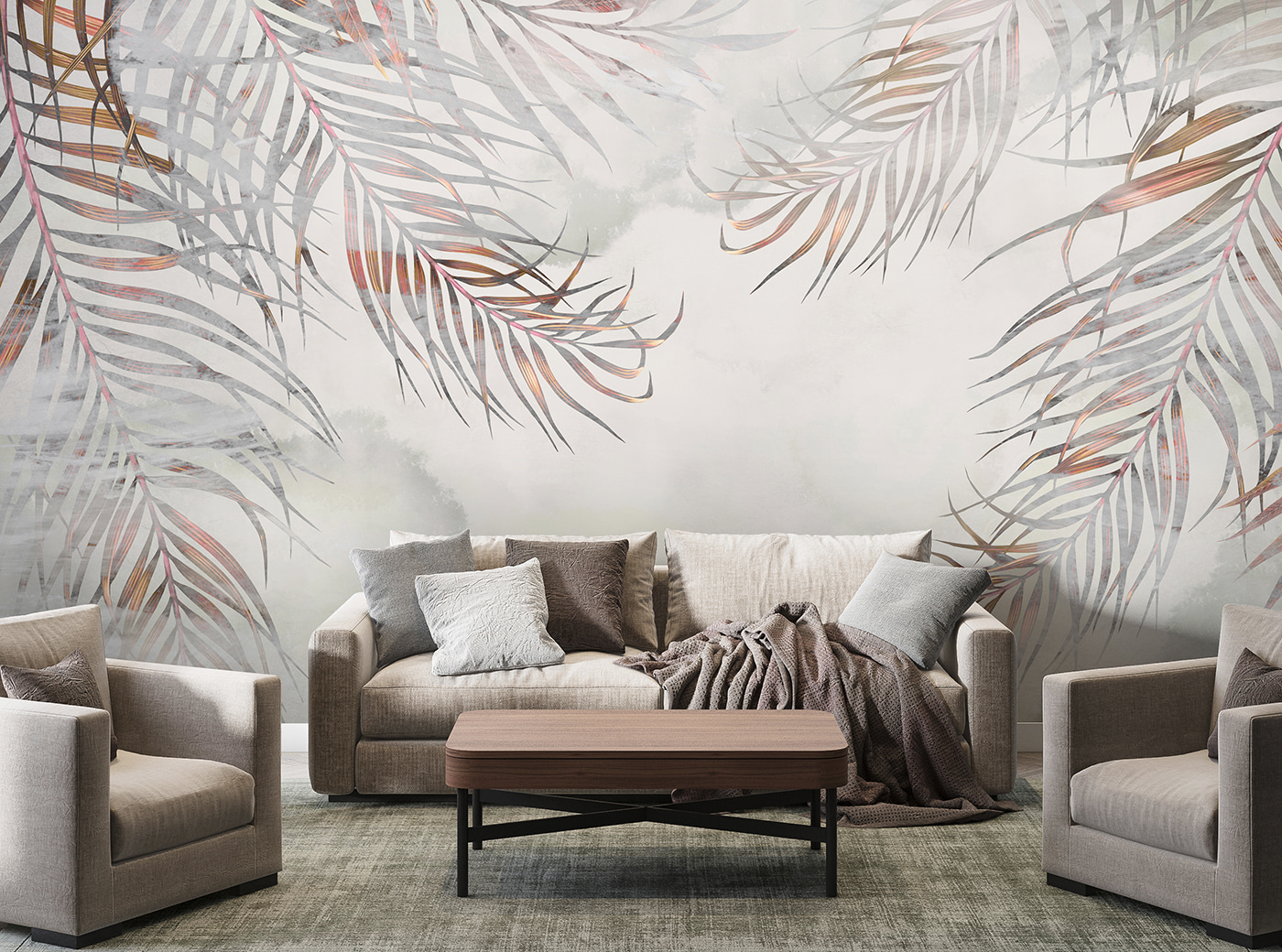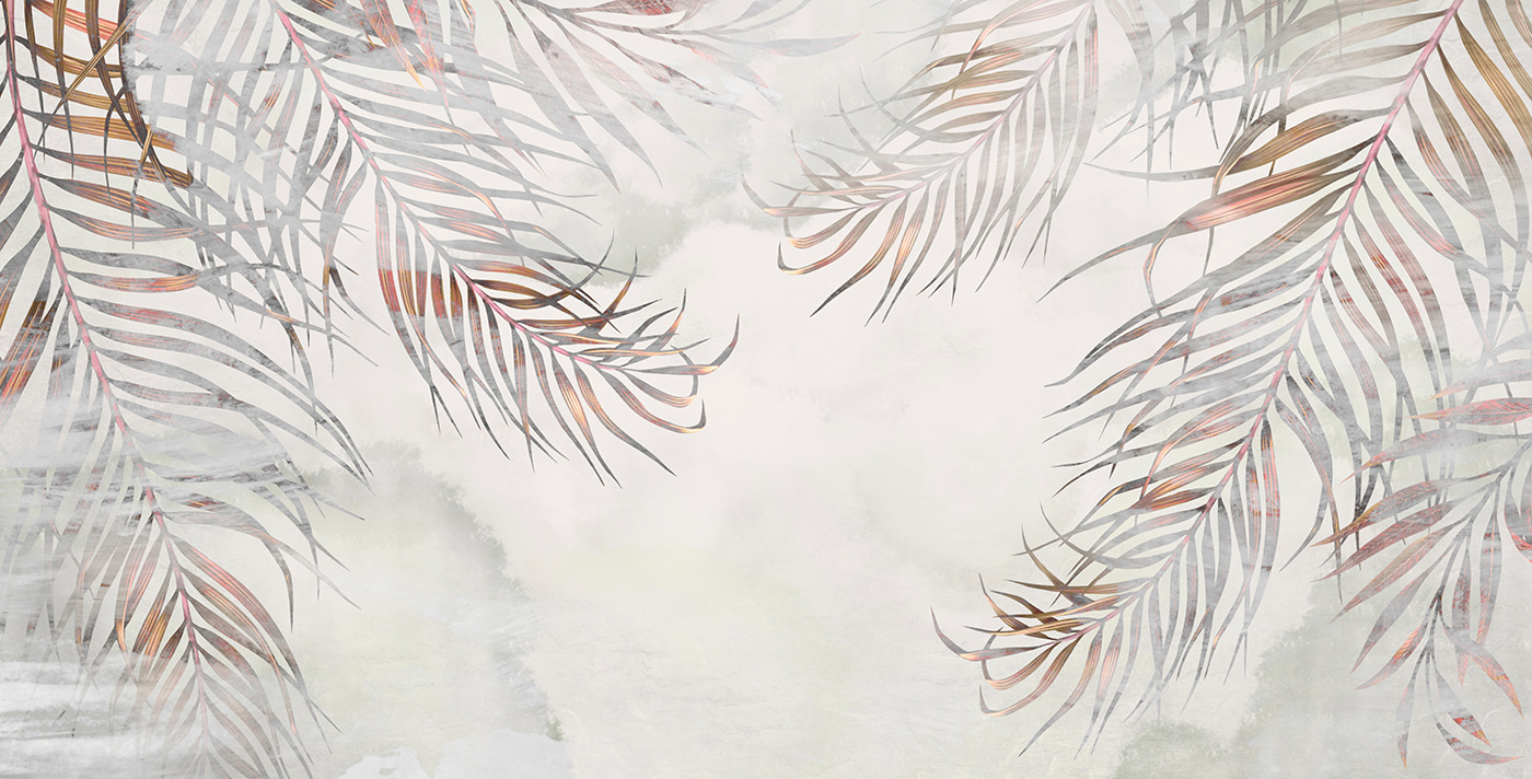 Carta da parati Eleganti foglie di palma in tonalità tenui. (SKU: u96553)