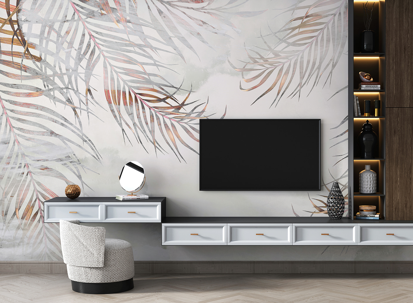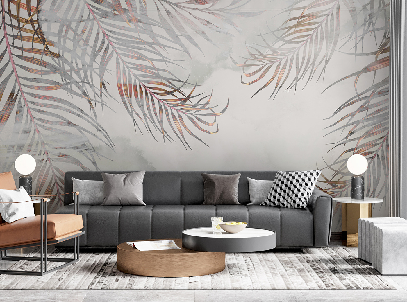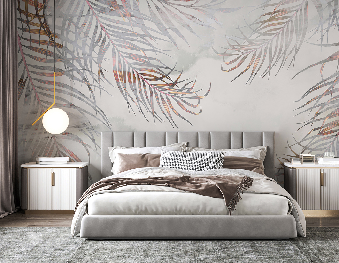 Carta da parati Eleganti foglie di palma in tonalità tenui. (SKU: u96553)