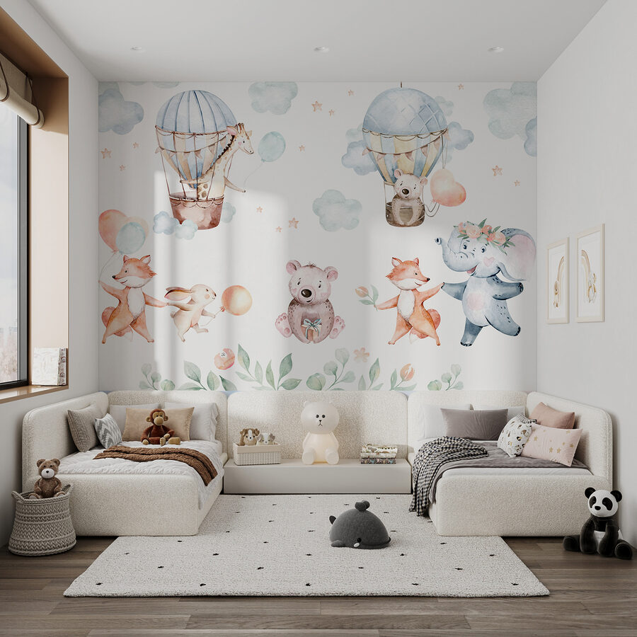 Immaginatevi il vostro bambino che lo guarda, scatenando risate e giochi immaginari senza fine. O forse siete voi gli adulti che adorano le decorazioni uniche e giocose. Vedere la giraffa che fa capolino dal cesto, con in mano un palloncino, è sufficiente a sollevare il morale di chiunque. Ideale per creare un santuario incantevole dove i dolci sogni prendono il volo. Questo murale non si limita a decorare le pareti, ma dipinge la felicità. Bambini o adulti, chi non vorrebbe danzare con gioia in una stanza adornata con questo fascino?