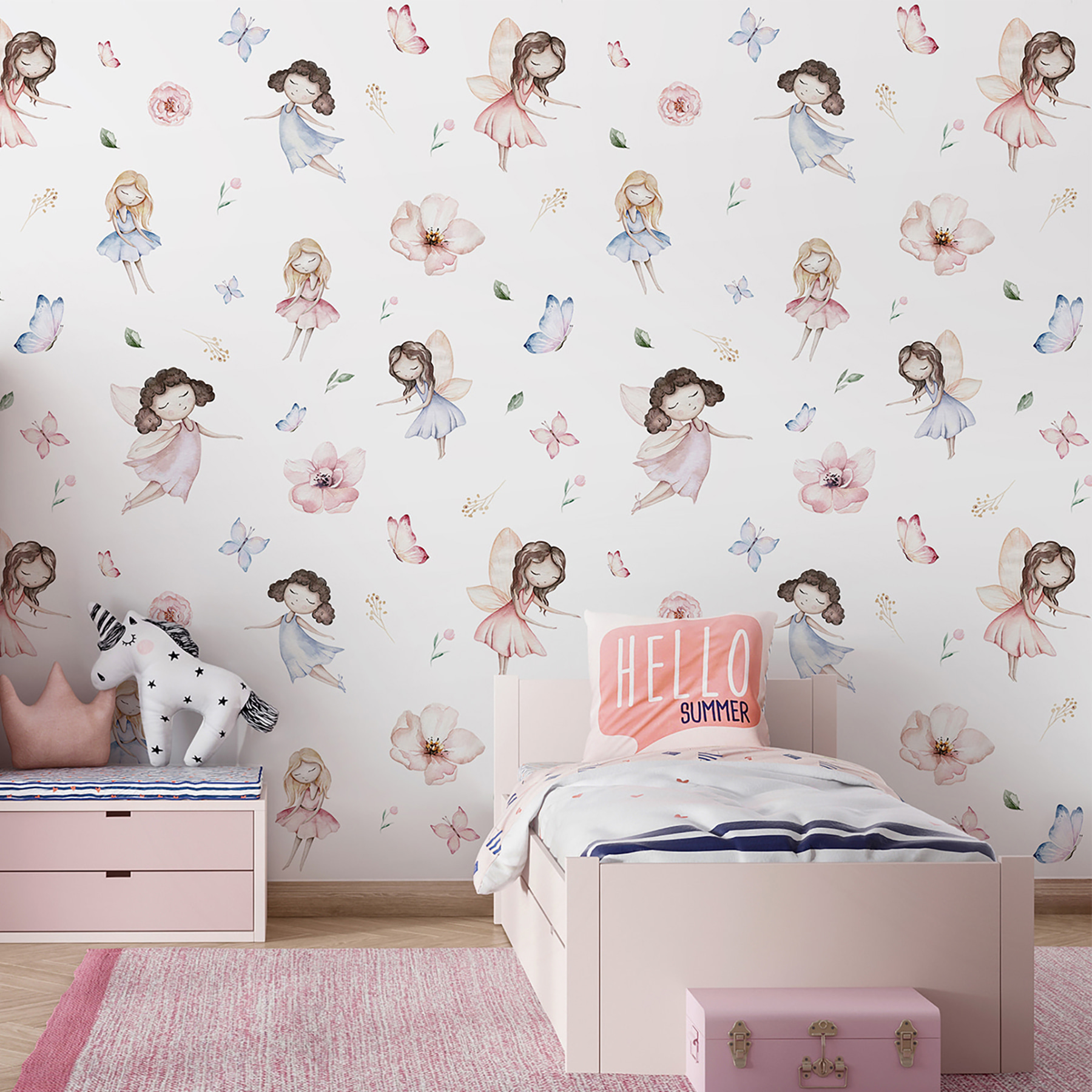 Immaginate di entrare in una stanza e di essere accolti da questo incantevole murale. È come entrare in una favola stravagante, vero? Questo murale “Disegno di una bambina in abito” è pieno di fascino e innocenza. Perfetto per lo spazio della vostra bambina, presenta dolci illustrazioni di bambine in abiti deliziosi, circondate da farfalle svolazzanti e fiori delicati.