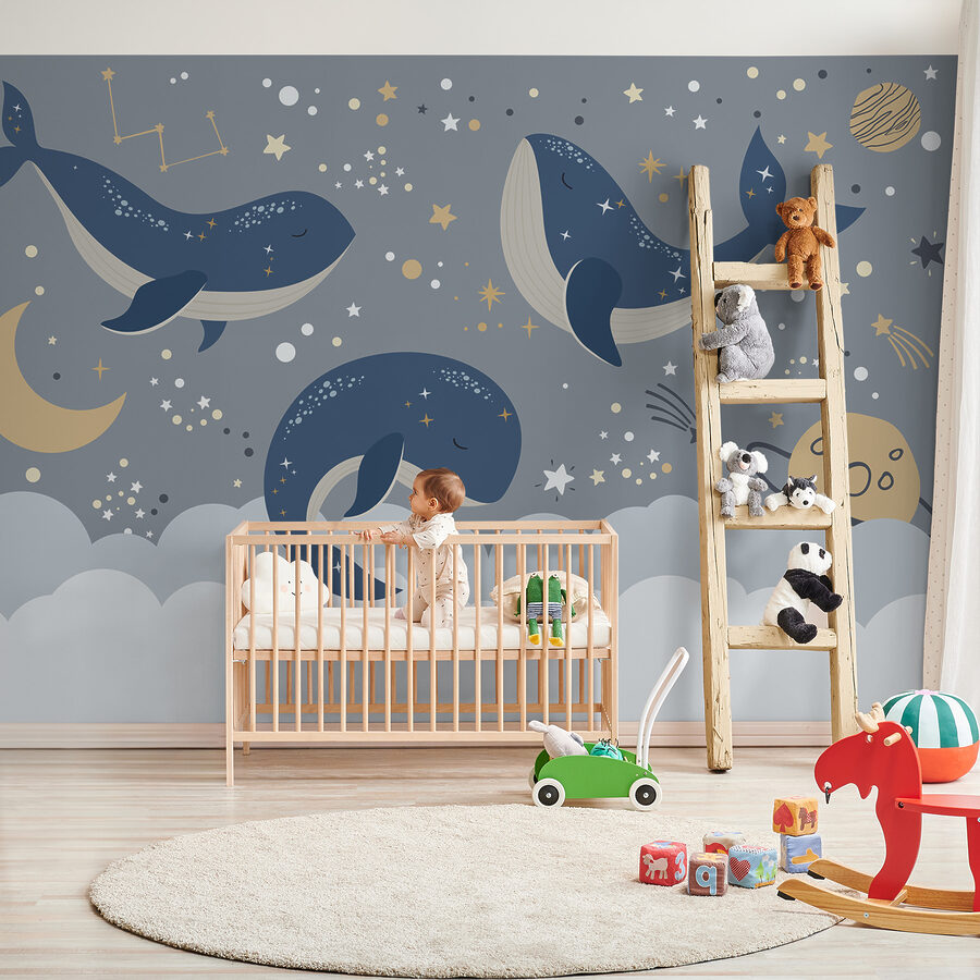 Volete aggiungere un tocco di meraviglia alla stanza del vostro bambino? Date un’occhiata a questo sognante “Carta da parati Blue Whale with White Tail and Stars!”. Immaginatelo sulla parete del vostro bambino: è come se fosse un pezzo di cielo notturno tutto per lui, completo di coccolose balene blu che fluttuano dolcemente in un mare di stelle e costellazioni. Perfetto per le camerette o per lo spazio di ogni piccolo avventuriero, aggiunge il giusto tocco di magia e serenità. Inoltre, le balene sonnacchiose sembrano promettere sogni d’oro a chi si appisola sotto di loro. È stravagante, rilassante e un po’ giocoso: uno sfondo delizioso per le storie della buonanotte e i sonnellini pomeridiani. Che sia per vostro figlio, vostra figlia o per i momenti di coccole con il vostro bambino, trasforma qualsiasi parete in una rilassante avventura stellata.