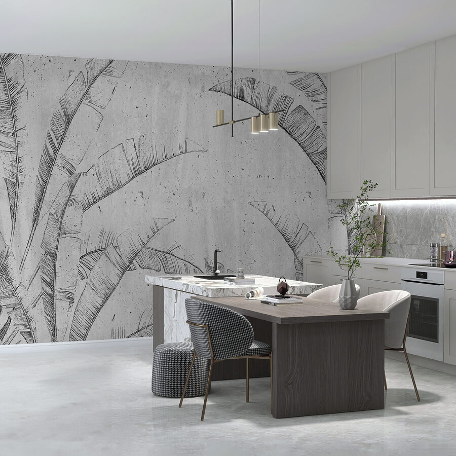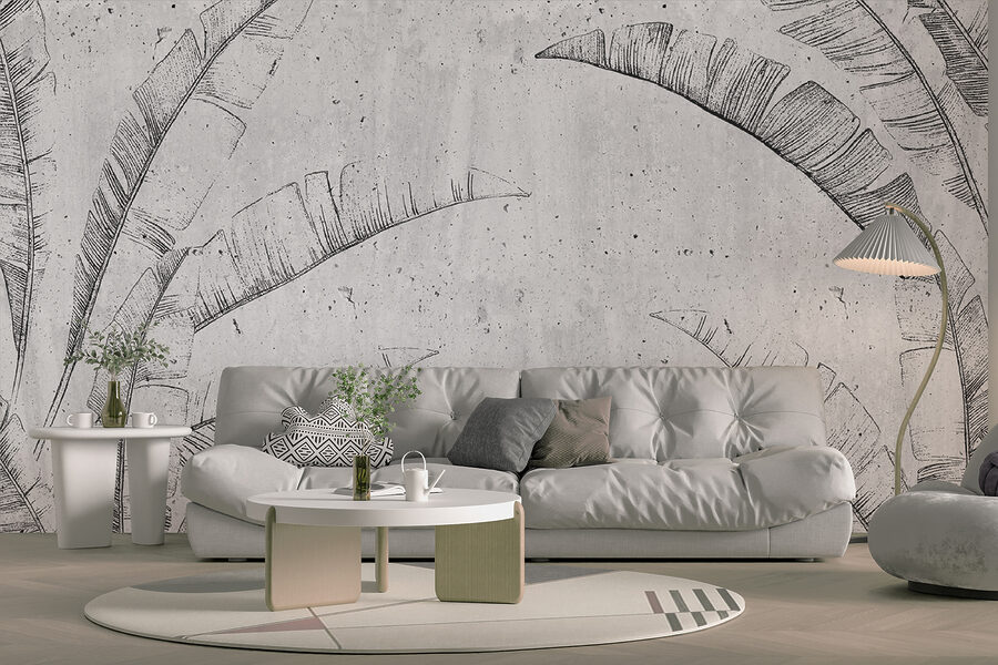 Immaginate questo sulla vostra parete: “Foglie tropicali su cemento”. Un murale che grida allo stesso tempo urban chic e piccola oasi nella giungla. È perfetto se desiderate rendere uno spazio più fresco e allo stesso tempo più stabile. Immaginate di sorseggiare il vostro caffè mattutino, di cogliere i giochi di luce sulle linee delle foglie di palma e di sentire l’atmosfera fresca del cemento. È come una piccola fuga esotica, ma senza bisogno di un biglietto aereo. Ci si aspetta quasi di sentire gli uccelli tropicali, vero? Questo murale è un’opera di sicuro effetto, ideale per tutti coloro che amano il mix di natura e stile moderno.