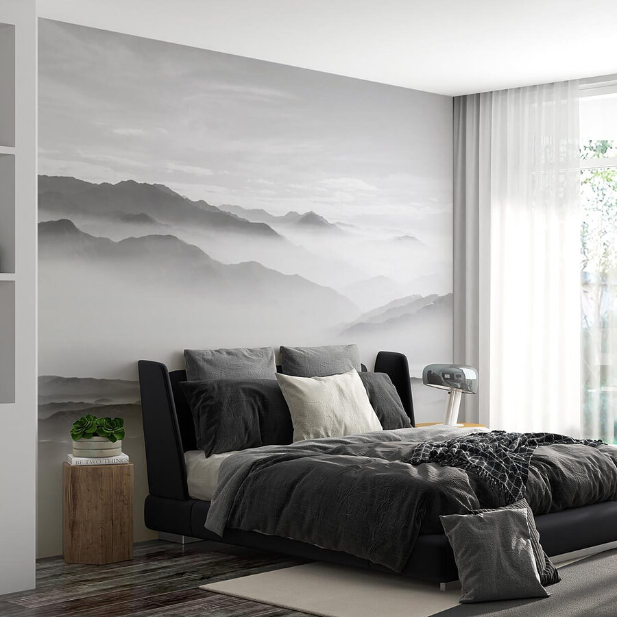 Le delicate tonalità di grigio creano un’atmosfera rilassante, che invita quasi a sorseggiare una tazza di tè caldo mentre si sogna fuori dalla finestra. Un momento prima si è nel pieno della frenesia della città e un momento dopo ci si perde in una tranquilla nebbia di montagna. È un ottimo spunto di conversazione e chi non vorrebbe condividere la propria parete con un po’ di magia della natura? Questo murale non si limita a decorare, ma crea uno spazio che sembra una boccata d’aria fresca.