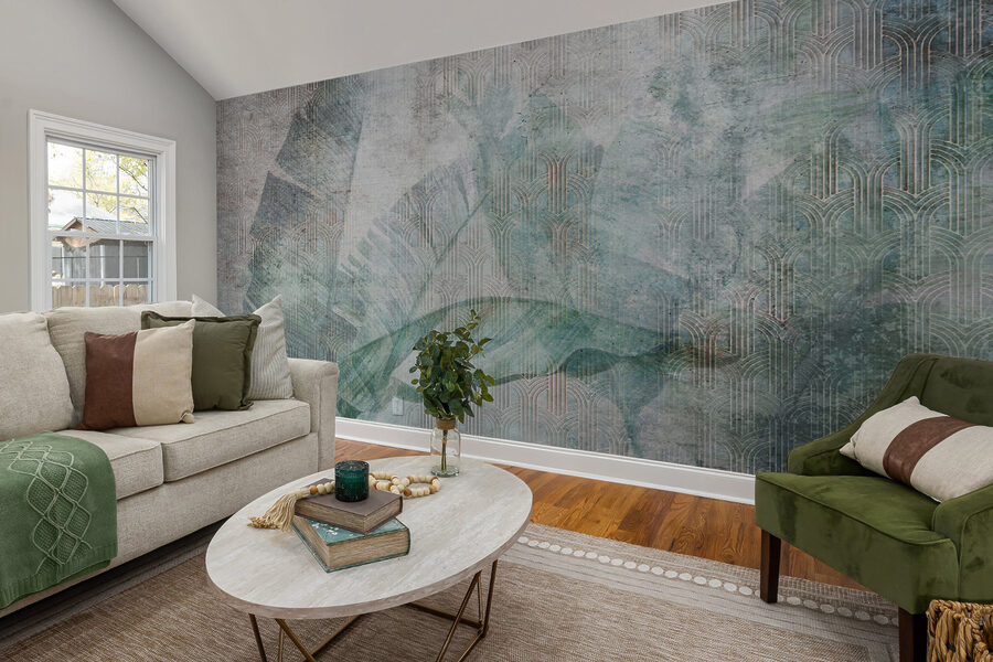 Dovete assolutamente vedere questo murale! Si chiama “Foglie vintage con motivi geometrici” ed è come entrare in un sogno artistico. Immaginate le foglie vintage che emanano vibrazioni nostalgiche, mentre i motivi geometrici danno un tocco di modernità. Una combinazione perfetta, no? Questo murale è come il pezzo mancante nel vostro spazio, soprattutto per coloro che amano un tocco di verde senza il fastidio di mantenere le piante vive.
