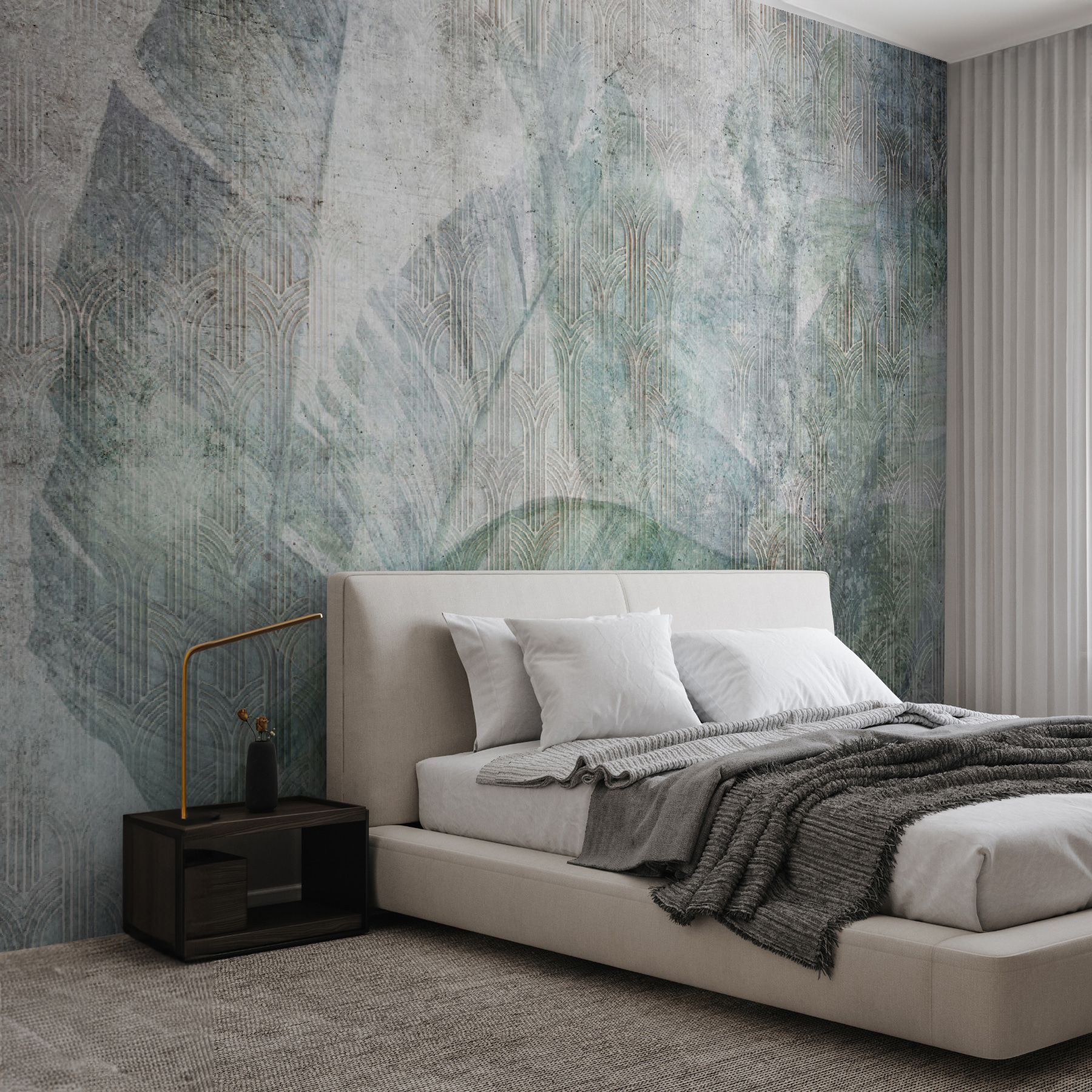 C’è qualcosa di così rilassante e allo stesso tempo rinvigorente, come una leggera brezza in un pomeriggio pigro. Le trame ricordano una vecchia fotografia cara, mescolata con il design moderno. Si possono quasi sentire le foglie che sfiorano la pelle e i toni delicati del grigio e del verde la rendono super versatile per qualsiasi ambiente. Avete una parete semplice? Questa è l’arma segreta per una raffinatezza immediata.