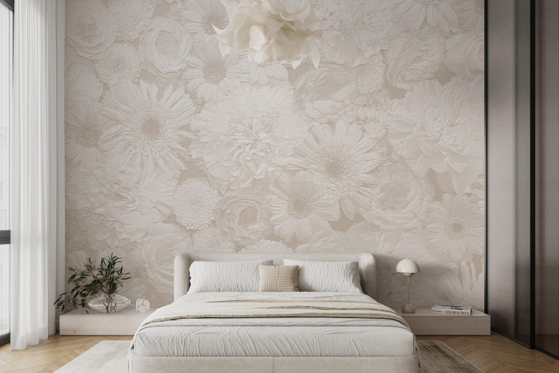 Avete mai voluto dare un tocco di eleganza con un tocco di novità alle vostre pareti? Questo murale “White Floral Pattern” potrebbe fare al caso vostro. Ha una texture delicata, quasi un sussurro, che attira l’attenzione. Immaginate di svegliarvi ogni mattina con un giardino in piena fioritura, proprio nel vostro salotto o nella vostra camera da letto. I toni morbidi e bianchi lo fanno sembrare uno spazio accogliente e sereno, perfetto per rilassarsi dopo una lunga giornata.