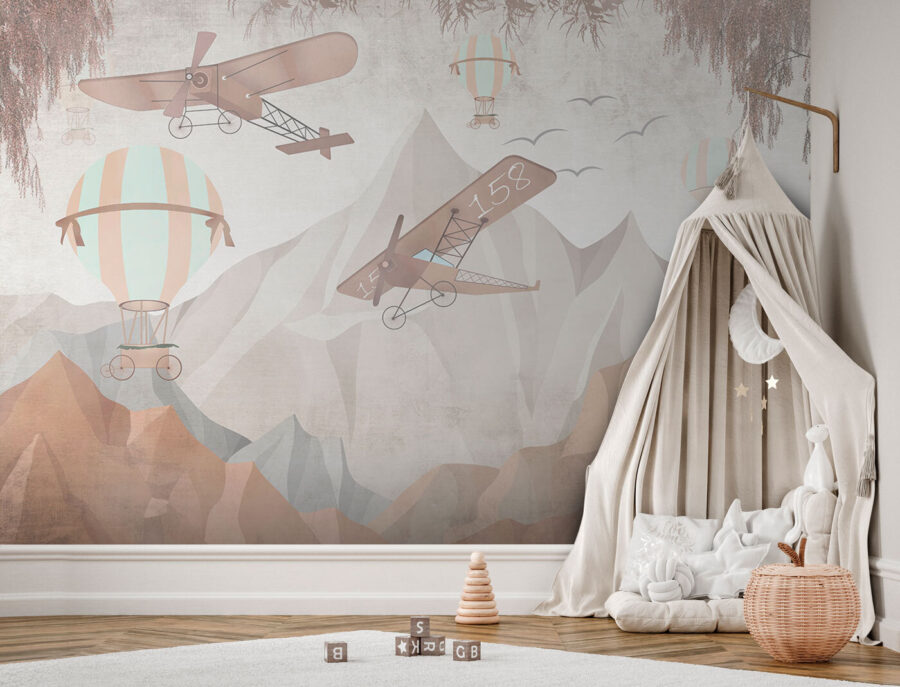 Immaginate il vostro piccolo che guarda verso l’alto, magari immaginando di cavalcare uno di questi affascinanti palloncini. Non è solo un quadro da parete, ma un trampolino di lancio per avventure e racconti nel mondo dei sogni. Che il vostro bambino sogni di pilotare un aereo d’epoca o di fluttuare sopra le nuvole, questo murale è in grado di stimolare la creatività e la gioia. Si sente ispirato? Sì, è così potente. Inoltre, chi non amerebbe uno sfondo che è praticamente una fuga istantanea verso una serena cima di montagna? Assolutamente delizioso.
