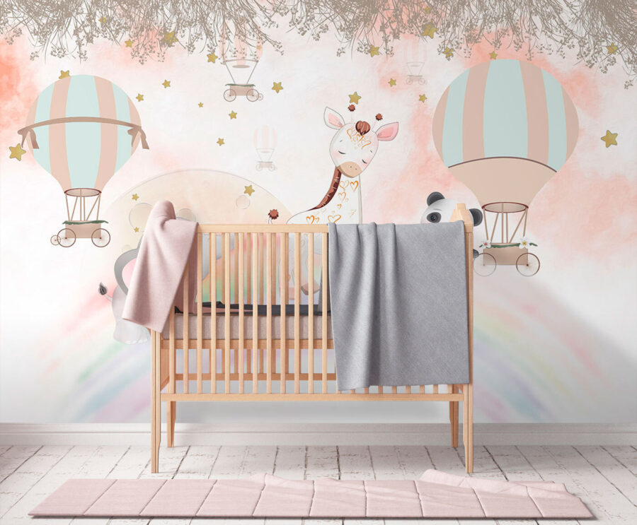 Ravviva la stanza di ogni bambino con questo incantevole murale con mongolfiere! Immaginate un cielo da sogno pieno di palloncini stravaganti che fluttuano sopra animali adorabili, come un’affascinante giraffa, un panda giocoso e un dolce elefantino. È una scena che invita all’avventura e stimola l’immaginazione. Immaginate i più piccoli mentre la guardano e si addormentano nel mondo dei sogni, sognando di volare in alto sopra le nuvole. I colori tenui creano un’atmosfera accogliente, perfetta per le storie della buonanotte. Questo murale non è solo una decorazione, è una porta d’accesso a un mondo fantastico. Chi non vorrebbe unirsi a quei giri in mongolfiera? Trasformerà qualsiasi spazio in un rifugio giocoso!