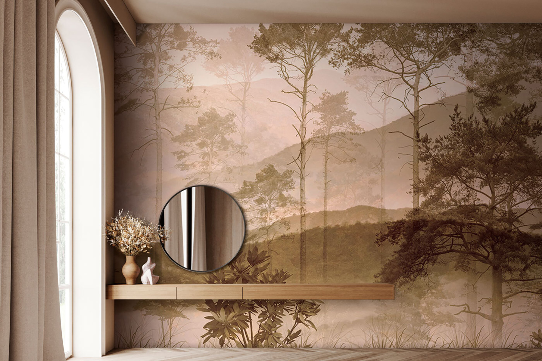 Inoltre, i toni tenui e il morbido effetto nebbia lo rendono versatile con qualsiasi stile di arredamento. Non si tratta solo di un murale, ma di un rifugio tranquillo che porta un po’ di magia della natura nella vostra casa. 🌲🗻