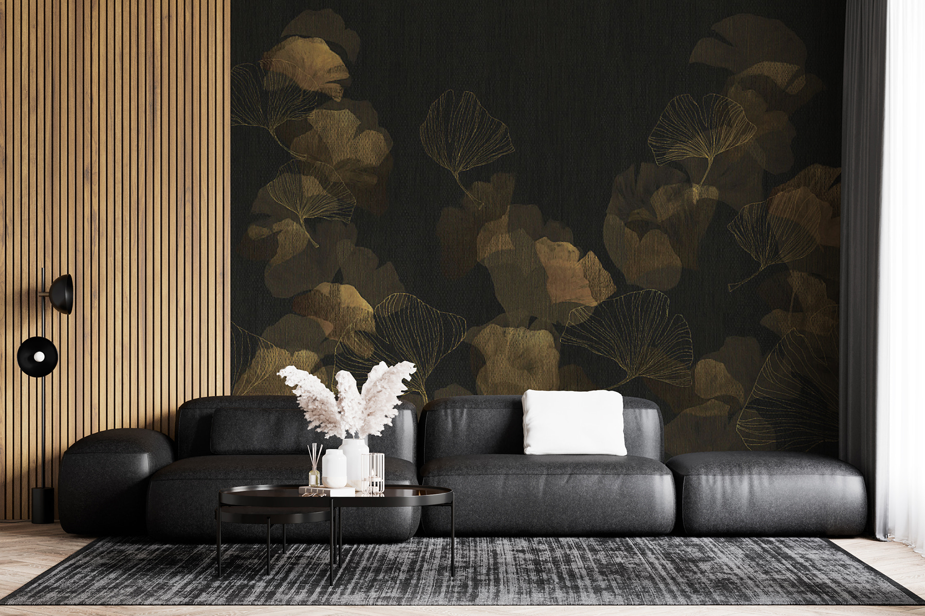 Trasformate il vostro spazio con questo splendido murale con foglie delicate su sfondo scuro. Immaginate di entrare in una stanza dove la natura incontra l’eleganza, avvolgendovi in un accogliente abbraccio. Aggiunge un tocco chic senza sforzo, rendendo le pareti vive senza sopraffare i sensi.