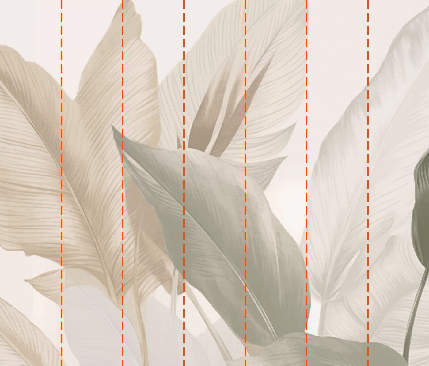 La carta da parati verrà preparata in base alle dimensioni fornite durante il processo d’ordine. La tela sarà suddivisa in comode sezioni, ciascuna larga fino a 50 cm.