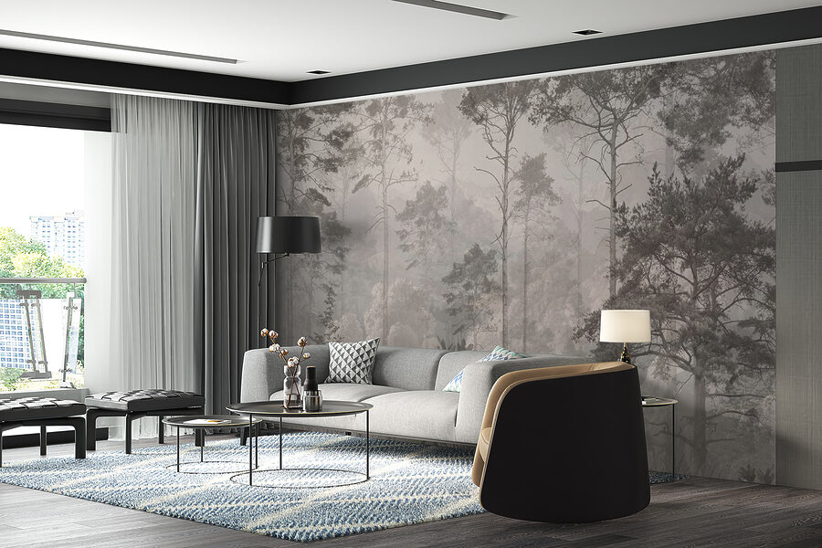 Guardate esattamente come apparirà il vostro spazio con la nuova carta da parati prima di acquistarla. Visualizzazione professionale da parte di designer esperti senza alcun costo o obbligo di acquisto.