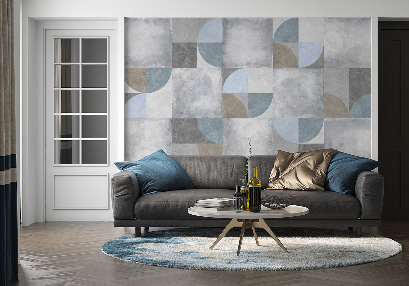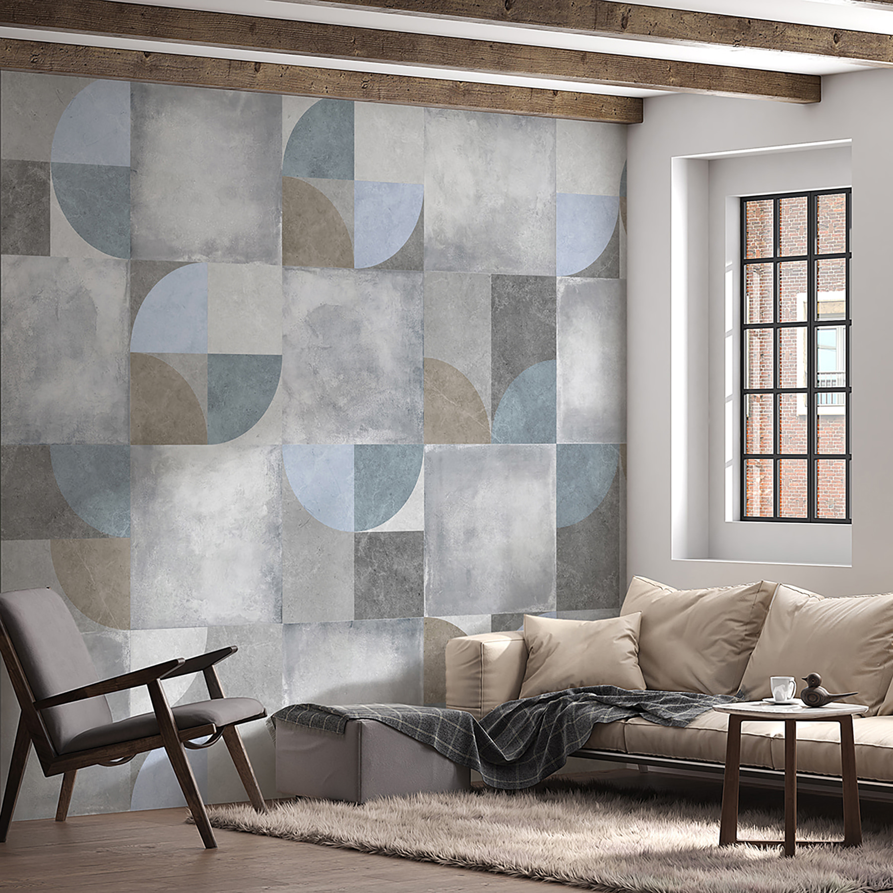 State pensando di dare una rinfrescata al vostro spazio? Date un’occhiata a questo murale “Motivo geometrico con colori tenui”. È un mix di grigi tenui, blu e toni della terra che trasuda calma e raffinatezza. Immaginate di entrare nel vostro salotto o nel vostro ufficio e di sentire immediatamente un’atmosfera rilassata. Ha un’atmosfera astratta e moderna, ma non è troppo appariscente. Inoltre, si può staccare e attaccare, il che significa che non ci sono problemi e non si sporca. Perfetto per chi è in affitto o per chi ha paura di impegnarsi, ma vuole comunque farsi notare. Aggiunge anche un po’ di profondità e dimensione alla parete. Potreste ritrovarvi a fissarlo, perdendovi nella simmetria e nei motivi. Un vero e proprio spunto di conversazione per gli amici, credetemi! Che si tratti di un minimalismo chic o di un look artistico, questo murale è destinato a rubare la scena.