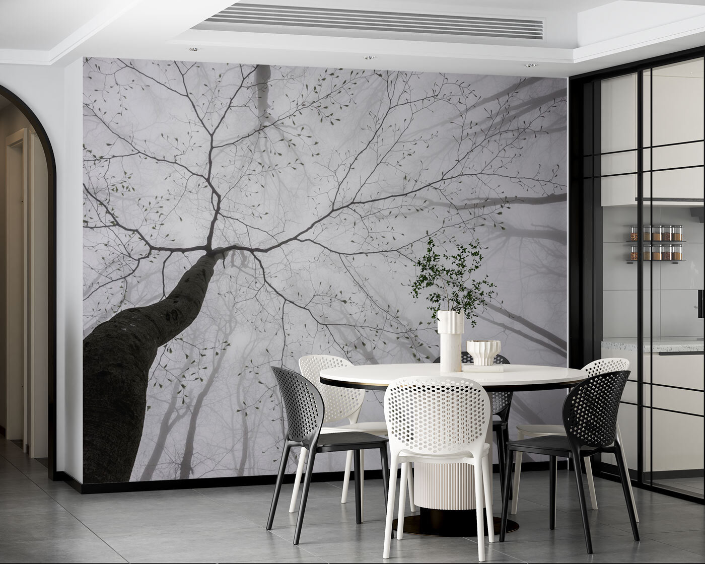 Immaginate di entrare in una stanza e di essere immediatamente trasportati in una foresta serena e nebbiosa. “Looking up at trees in the fog” cattura esattamente questo stato d’animo. La nebbia avvolge gli alberi alti ed eleganti, emanando vibrazioni pacifiche e sognanti. È come se la natura avesse premuto il pulsante di pausa solo per voi. Immaginatevi mentre sorseggiate il caffè del mattino, sentite la freschezza della nebbia o semplicemente fate un respiro profondo dopo una lunga giornata: questo murale porta le sensazioni rilassanti della foresta direttamente nel vostro spazio. Perfetto per chi ama un tocco di zen con un pizzico di mistero. Un bel promemoria per ricordare che a volte basta guardare in alto.