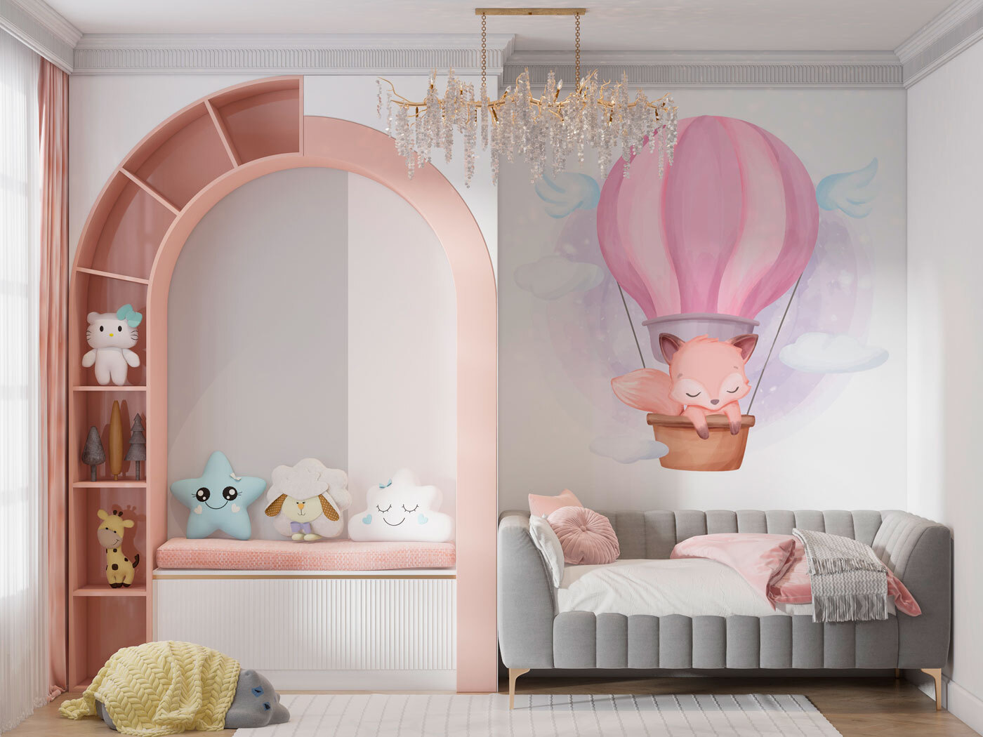 Immaginate di fluttuare nel mondo dei sogni su una soffice nuvola, con una mongolfiera rosa che vi ci porta! Questo murale “Mongolfiera rosa” è perfetto per la camera dei bambini, sia per il figlio avventuroso che per la figlia sognatrice. I sognanti colori pastello e l’adorabile volpe addormentata rendono questo murale simile a un caldo abbraccio. Aggiunge il giusto tocco di fantasia e magia a qualsiasi spazio.