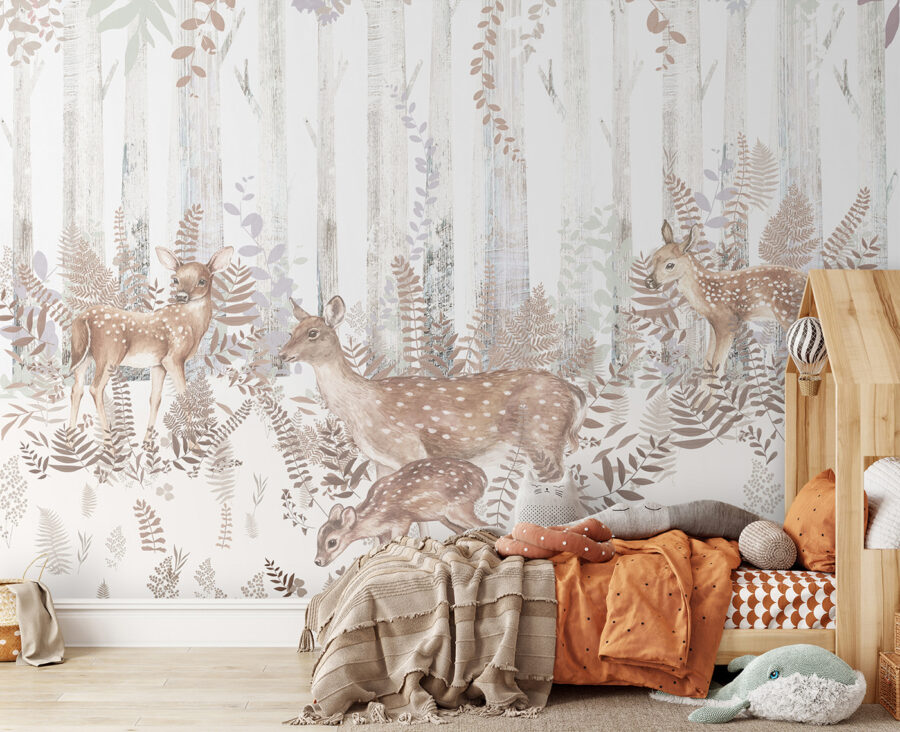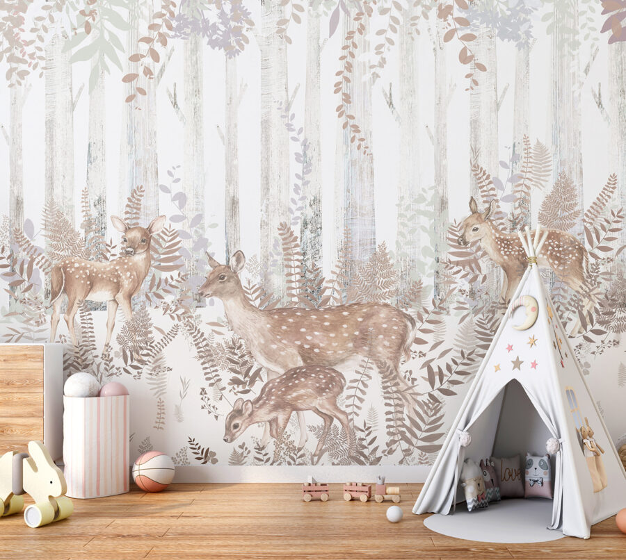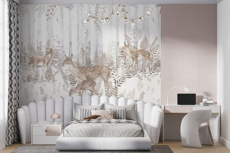 Avete mai visto un murale con dei cervi che scorrazzano in una foresta? Questo è semplicemente magico: sembra uscito da una fiaba! Immaginate la cameretta del vostro bambino con questa stampa incantevole; i colori tenui e le texture delicate sono perfetti per stimolare l’immaginazione durante il gioco o le storie della buonanotte. I simpatici cervi sembrano quasi pronti a saltare fuori dalla parete. Che sia per lo spazio da sogno di vostra figlia o per la tranquilla cameretta del vostro bambino, questo murale aggiunge un tocco estroso ma sereno. È più di una decorazione: è puro fascino del bosco!