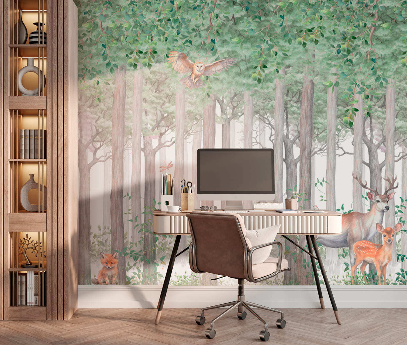 Sognate una foresta magica proprio nel vostro salotto? Non cercate oltre! Questo murale, intitolato “Gruppo di animali in una foresta”, è come entrare in un bosco incantato. Immaginate di svegliarvi con cervi gentili, volpi curiose e un gufo che scivola con grazia tra gli alberi. I colori tenui e naturali potrebbero calmare il vostro spazio e la vostra anima. È l’ideale per gli amanti della natura, in quanto aggiunge un tocco di natura selvaggia senza bisogno di una vera e propria fauna selvatica. E poi c’è anche una bicicletta vintage nascosta tra gli alberi: che fascino! Trasformate qualsiasi stanza nel vostro piccolo rifugio nella foresta.