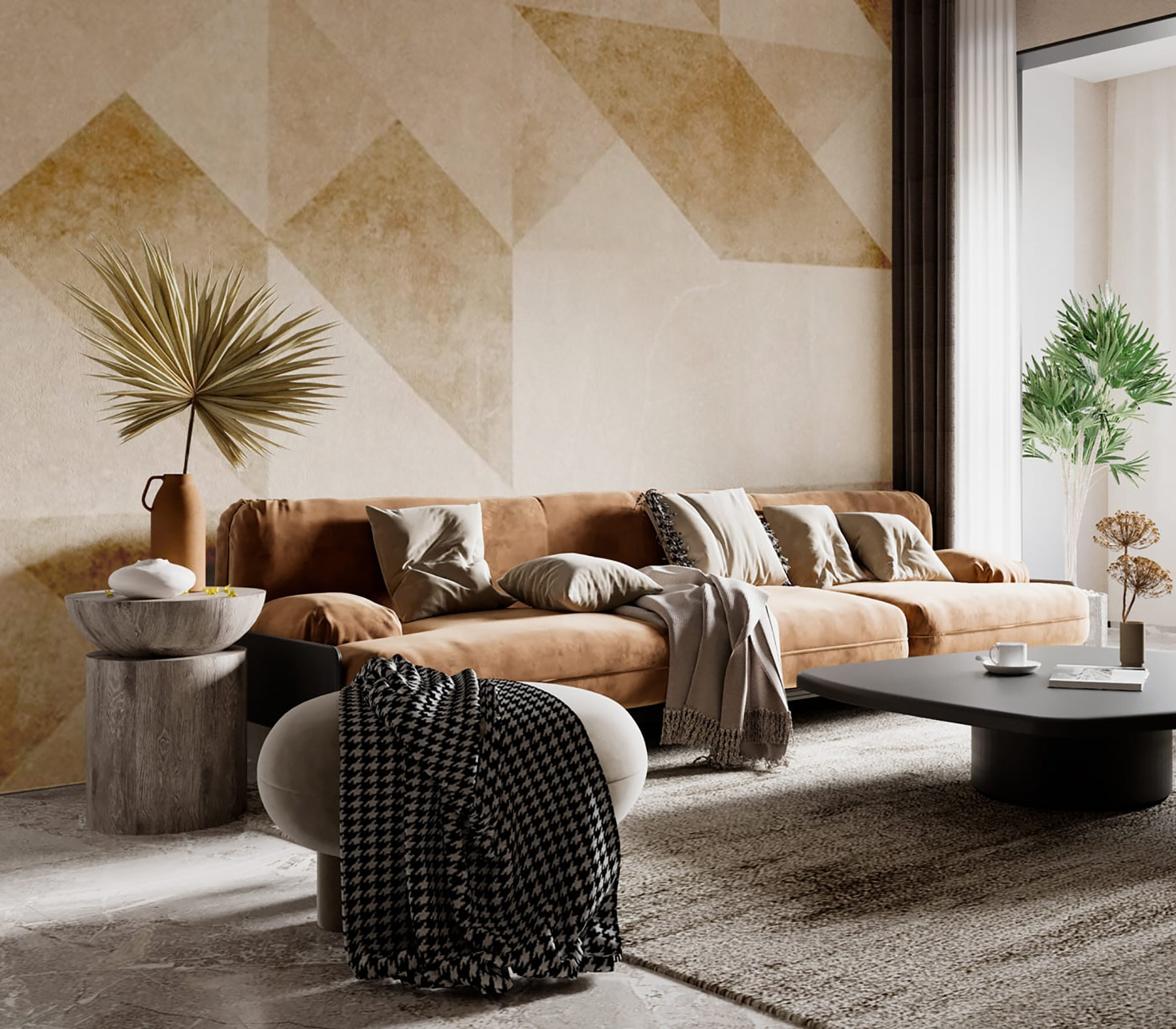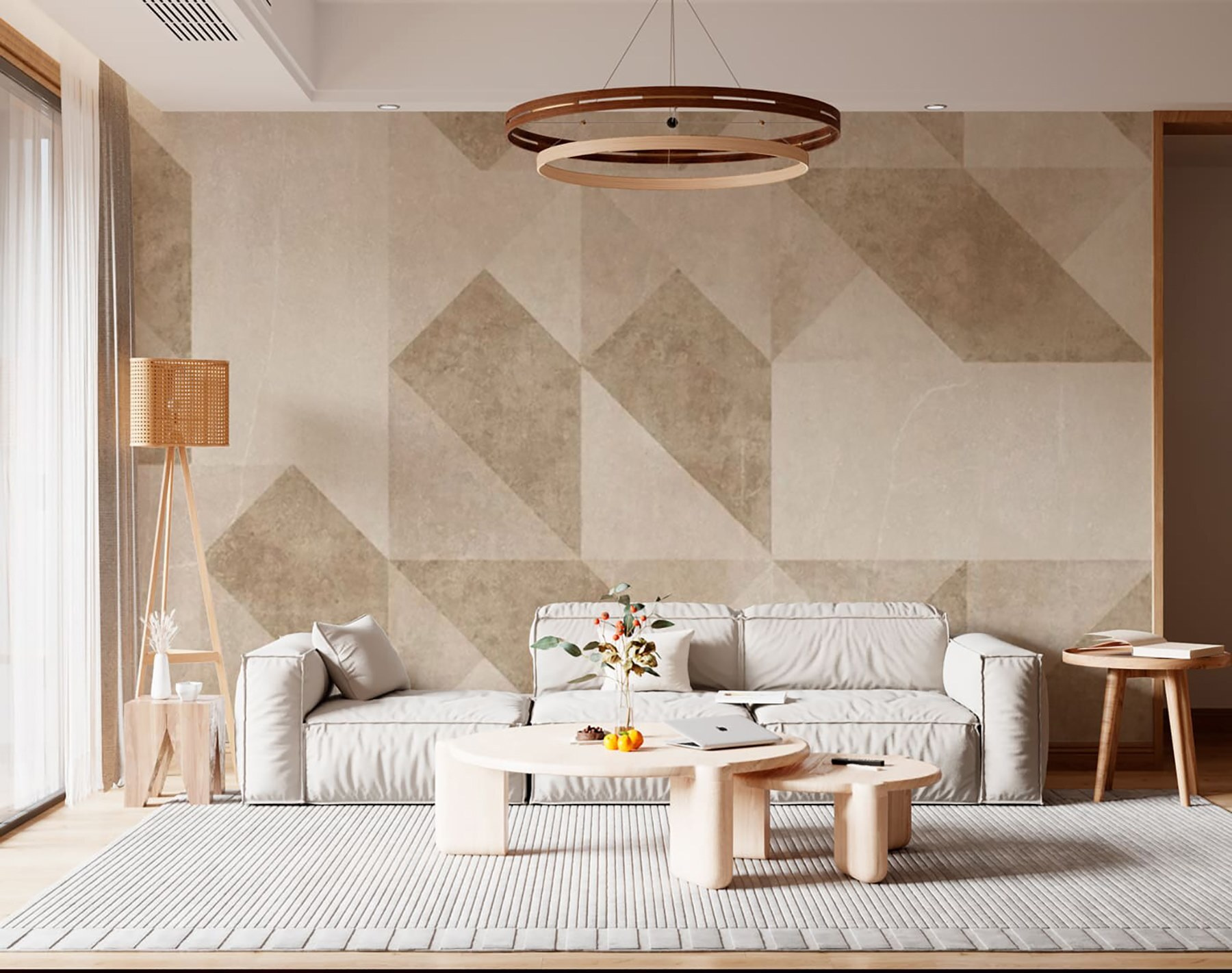 Trasformate il vostro spazio con questo splendido murale geometrico dai toni neutri. Immaginate di entrare nella vostra stanza e di sentirvi avvolti da una calma istantanea. Le forme morbide creano uno sfondo armonioso, perfetto per ogni spazio accogliente. È come avvolgere le pareti in un abbraccio caldo ed elegante. Ideale per il soggiorno o l’ufficio, questo murale aggiunge un tocco di raffinatezza senza essere troppo appariscente. Inoltre, è abbastanza versatile da sposarsi con vari stili di arredamento: minimalista, boho o anche un po’ eccentrico. Chi avrebbe mai detto che la geometria potesse essere così invitante? Le texture sottili faranno pensare agli ospiti che avete un occhio di riguardo per il design, ma non dite loro che è stato facile!