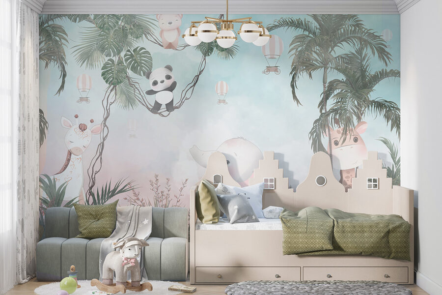 Trasformate qualsiasi parete noiosa in un’avventura con questo murale che raffigura un giocoso panda dei cartoni animati, davvero adorabile. Immaginatevi una cameretta accogliente dove il vostro piccolo potrà immaginare di dondolare tra gli alberi insieme a un simpatico panda e a un elefante che sembra pronto a regalare qualche dolce risatina. I colori tenui creano uno sfondo rilassante, perfetto per l’ora del pisolino o per l’ascolto delle fiabe. È come una fuga nella giungla, proprio a casa vostra. Immaginate i sorrisi quando gli ospiti entrano e vedono questa scena allegra: praticamente invita alla gioia e all’immaginazione nella stanza. È un modo semplice per trasformare uno spazio in un mini safari!