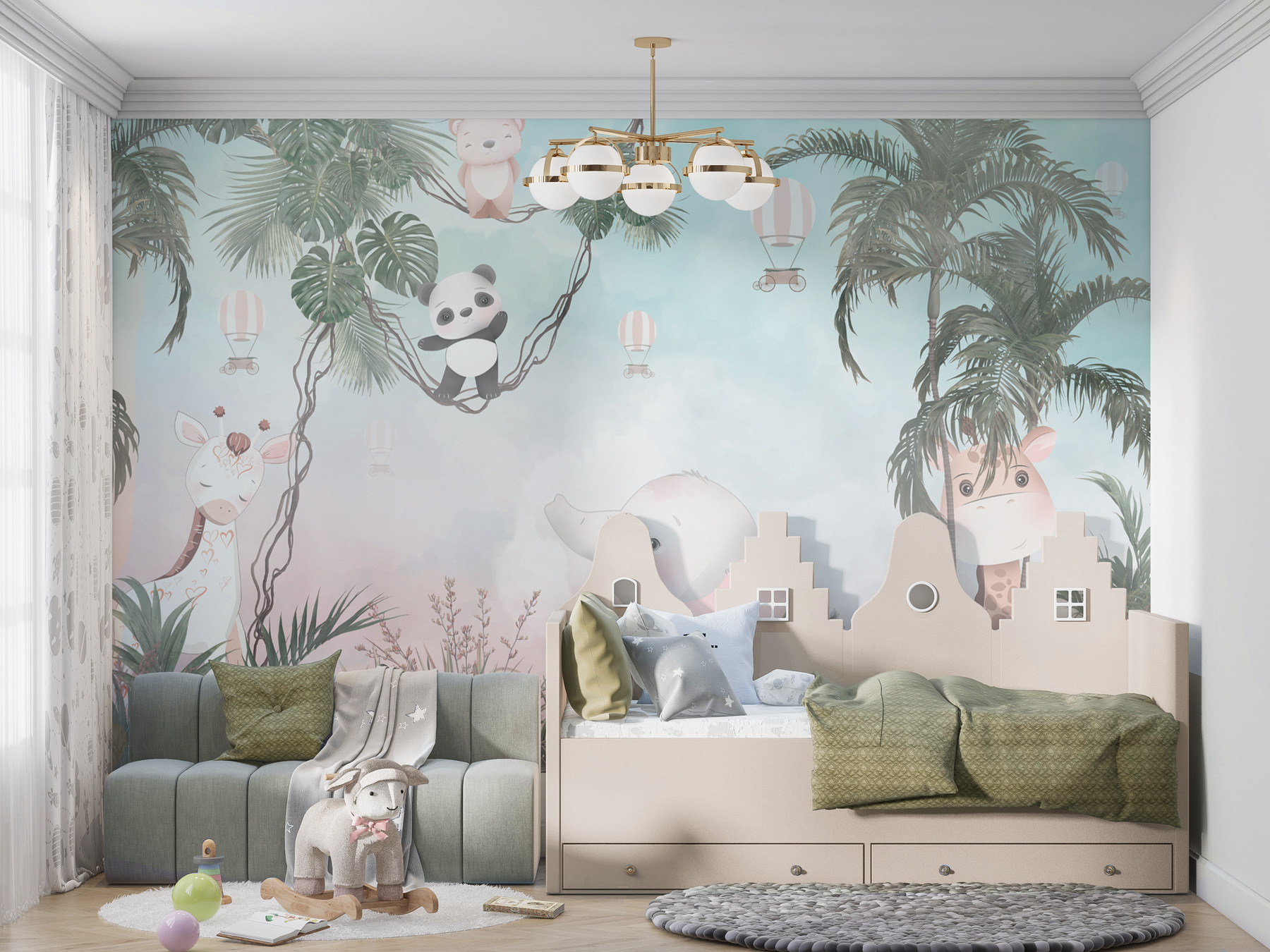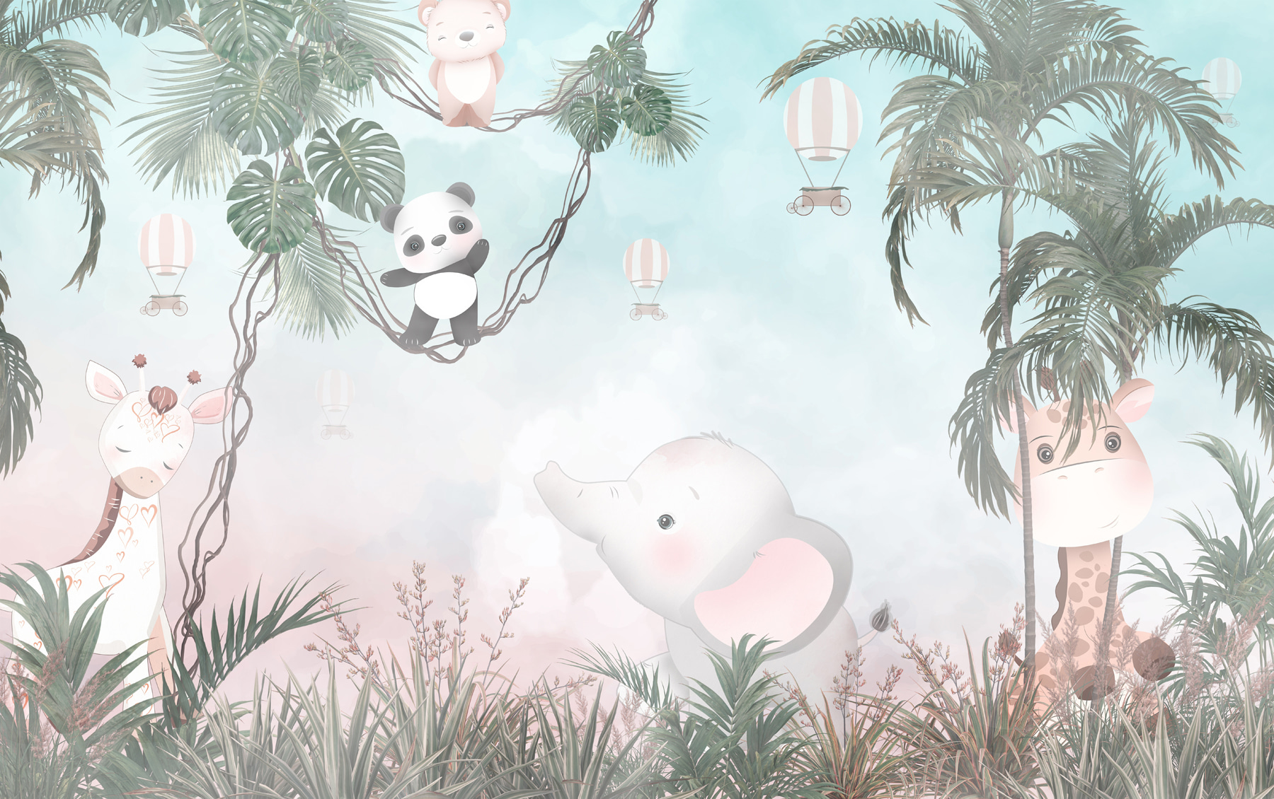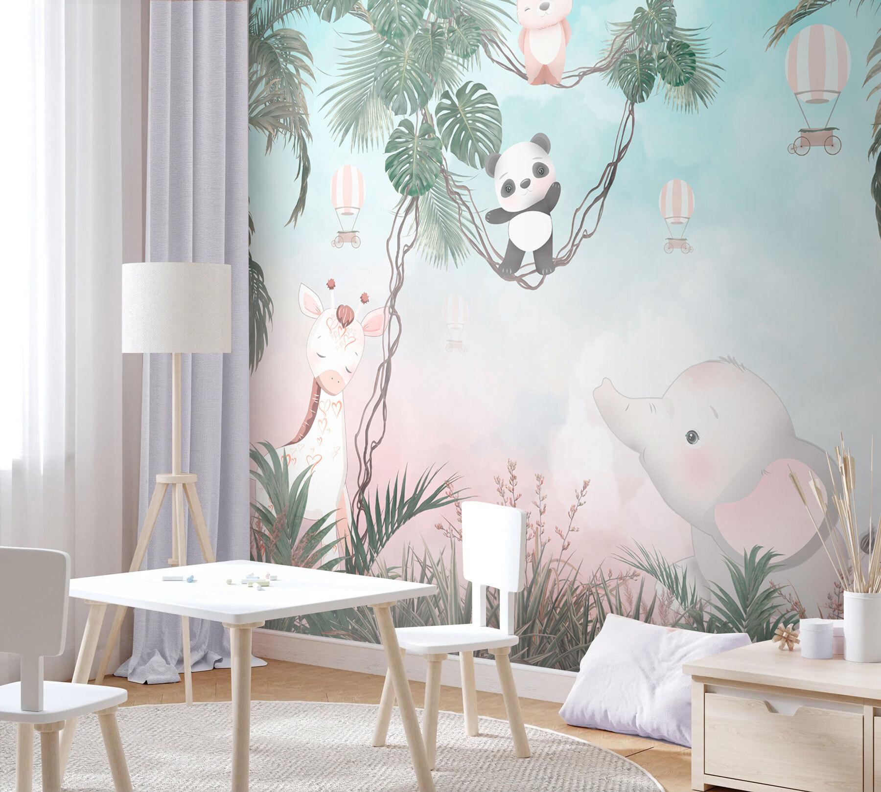 Trasformate qualsiasi parete noiosa in un’avventura con questo murale che raffigura un giocoso panda dei cartoni animati, davvero adorabile. Immaginatevi una cameretta accogliente dove il vostro piccolo potrà immaginare di dondolare tra gli alberi insieme a un simpatico panda e a un elefante che sembra pronto a regalare qualche dolce risatina. I colori tenui creano uno sfondo rilassante, perfetto per l’ora del pisolino o per l’ascolto delle fiabe. È come una fuga nella giungla, proprio a casa vostra. Immaginate i sorrisi quando gli ospiti entrano e vedono questa scena allegra: praticamente invita alla gioia e all’immaginazione nella stanza. È un modo semplice per trasformare uno spazio in un mini safari!