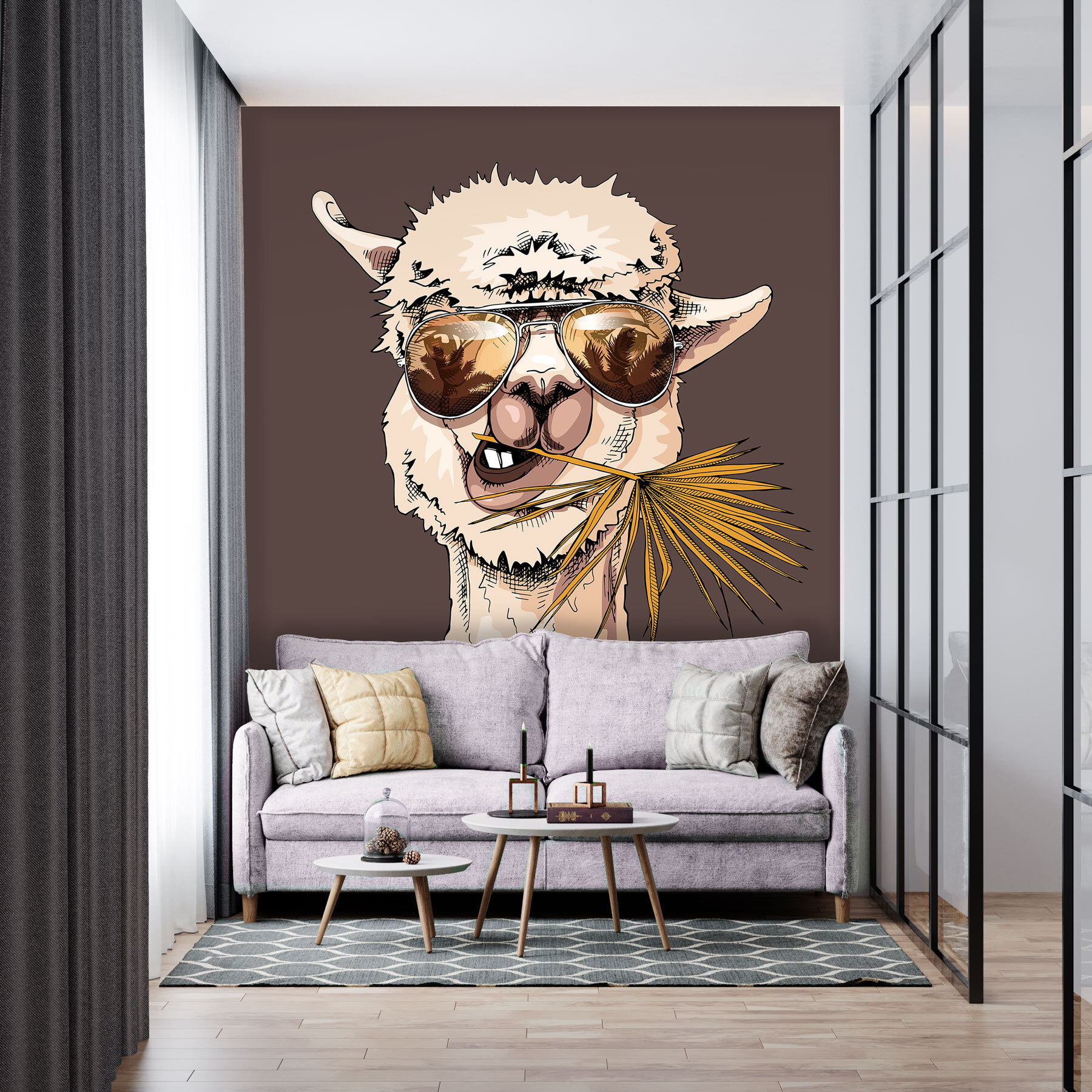 Vi siete mai fatti salutare da un lama? Beh, ora è la vostra occasione! Questo murale presenta un lama super elegante che dondola gli occhiali da sole, assolutamente rilassato e pronto a portare un po’ di divertimento nel vostro spazio. Immaginatelo nella stanza di un bambino o in un’area giochi; aggiungerà un sacco di carattere e un pizzico di fantasia. I vostri ospiti sorrideranno ogni volta che lo vedranno. Lo sfondo marrone tenue lo rende contemporaneo e si abbina bene a molti stili di arredamento. Che sia per un amante degli animali o semplicemente per chi ama l’arte murale unica, questo murale è un modo sicuro per ravvivare qualsiasi stanza!